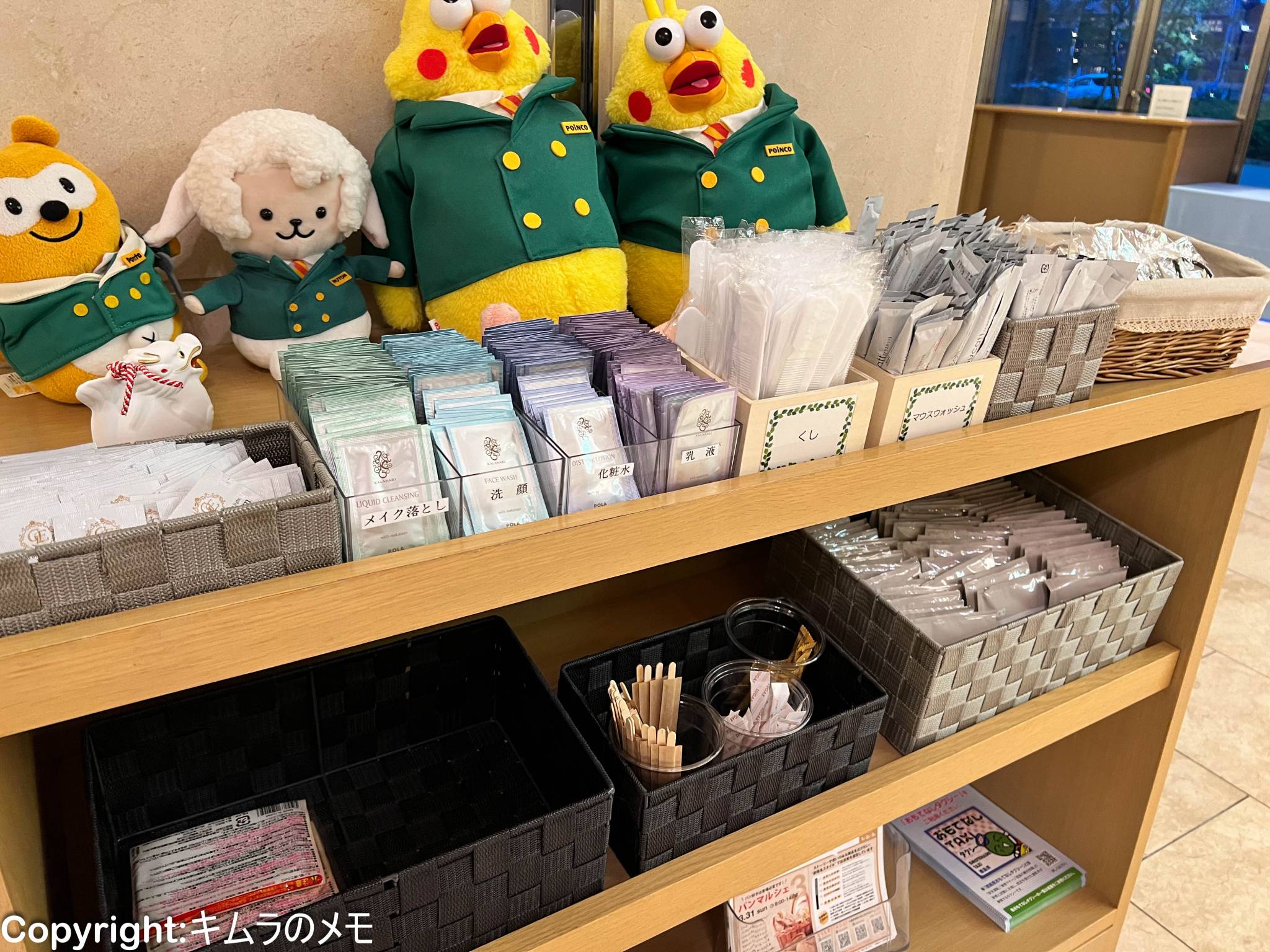 その他の化粧水等、そしてドリップコーヒーはフロント前のアメニティーコーナーに準備されている。