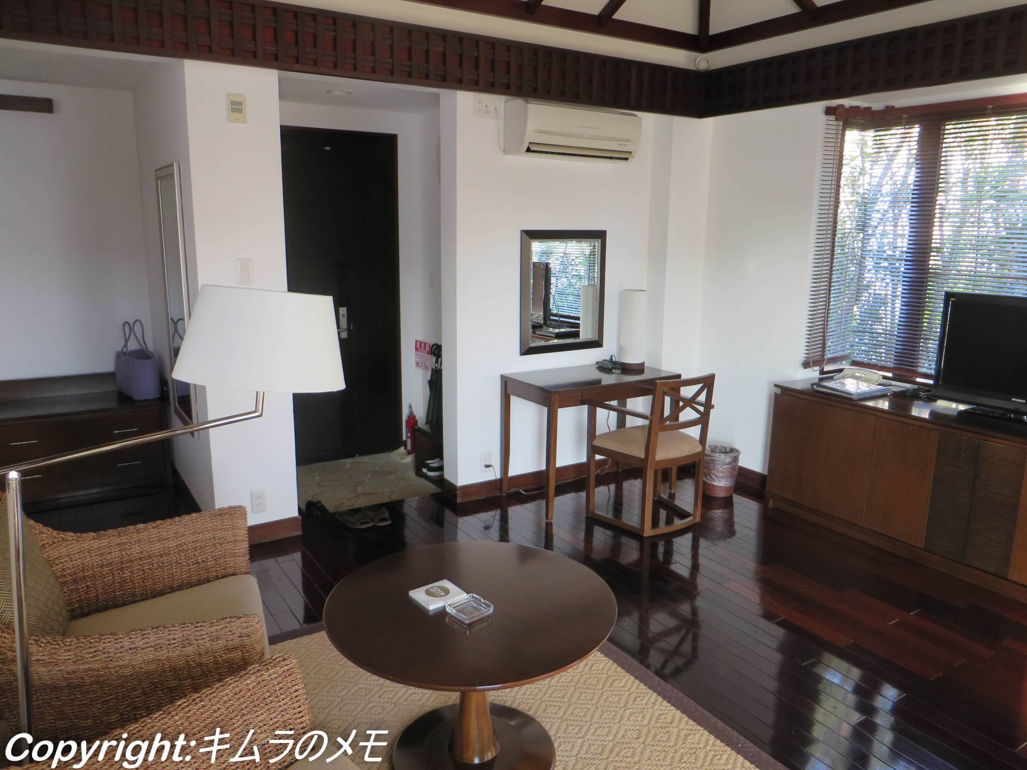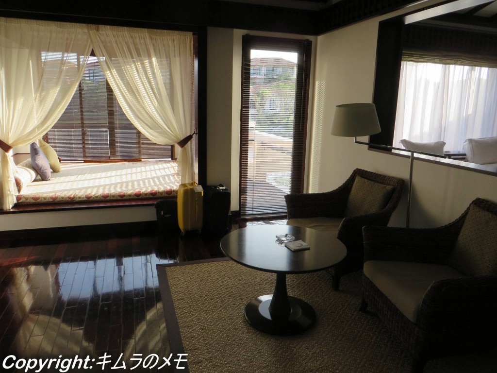 今回は「デラックススイート」を予約、フロント棟からは歩いて5分程度の所という事と荷物もあったので、電動カートで送って頂く事にした。