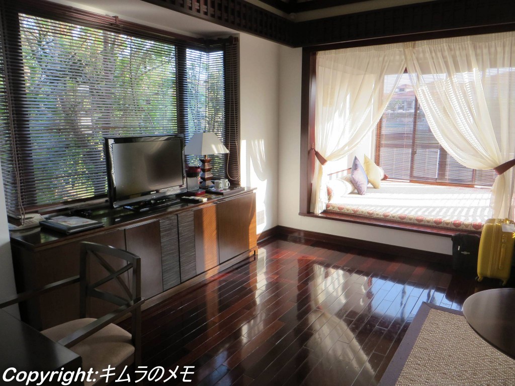 このタイプの部屋であれば広さは十分過ぎる位で、日中はゴルフやアクティビティーを満喫するということであれば、一番価格の低い部屋でも十分。