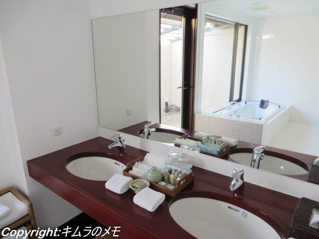 バスルームに入るとまず目に飛び込んでくるのが広々とした洗面台。