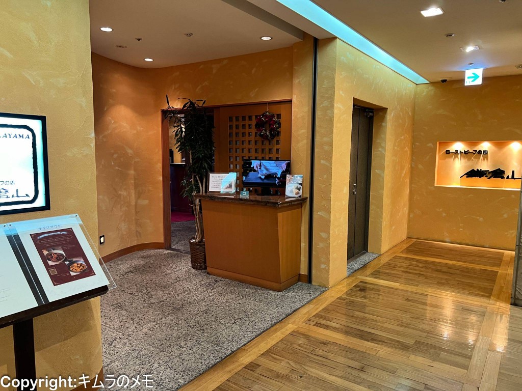 落ち着いた入口の外観で「ローストビーフの店 鎌倉山」と書かれた看板が店舗前に出されている。