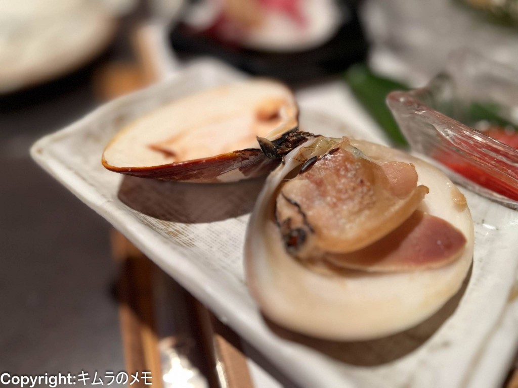 蝦夷アワビやホッキ貝、鰆など、和食感満載の刺身からスタート。