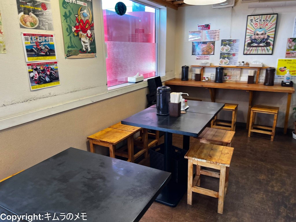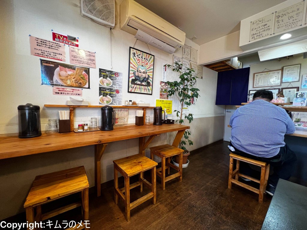 店内はシンプルな内装でカウンター席が8席、4名用のテーブル席が2卓のトータルキャパ20席弱のこぢんまりとしたスペース。