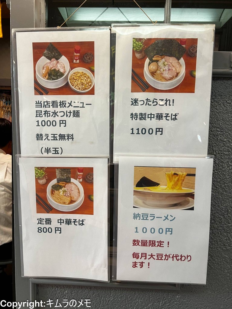 こちらが店舗外に掲載されている写真付きのメニュー。
