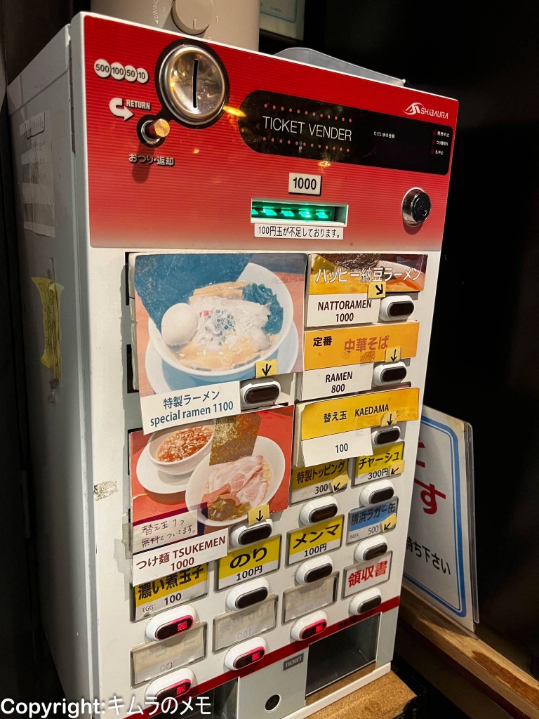 店内には券売機が置かれているのでこちらで食券を購入する。