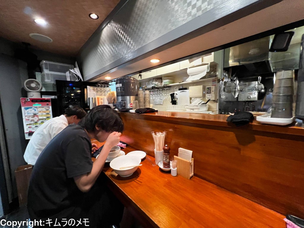 ただ、隣席との距離感はそれなりにあり、店内は木目調のカウンター席となっており落ち着いた雰囲気となっているので女性でも入りやすい。