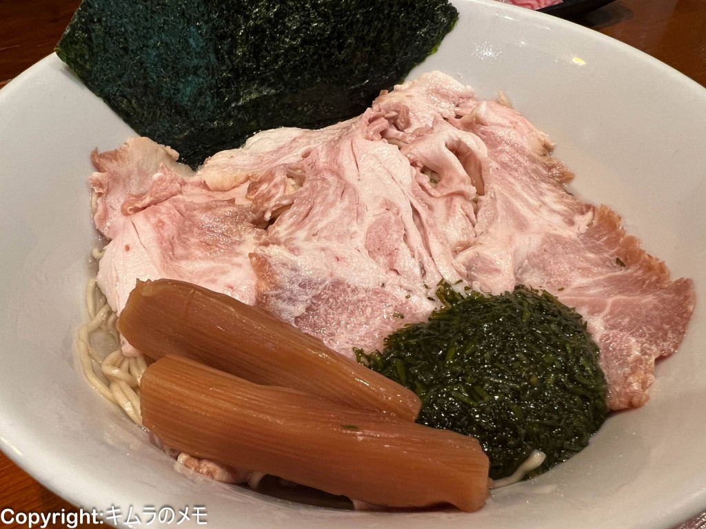 特にトッピング等を追加しないデフォルト状態ではあるが、大きなメンマが2本、そして丼全面に敷き詰められたチャーシューは存在感がある。