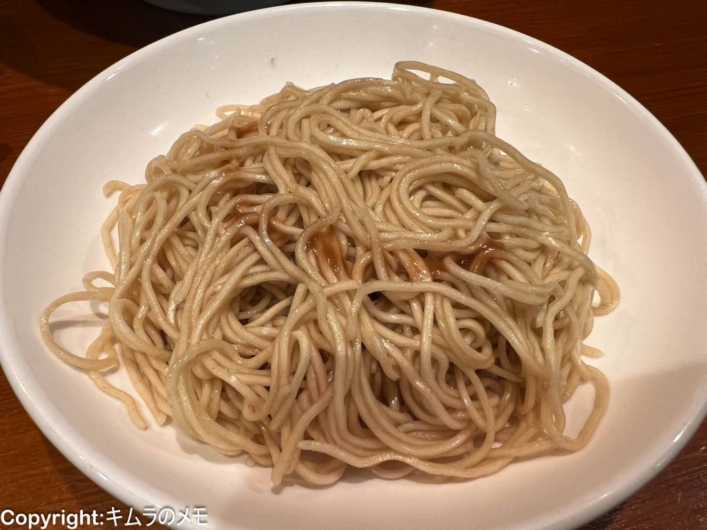 合わせる麺は最近時々見かける京都の製麺店である「麺屋棣鄂」のものであり、つけ麺としては珍しい細麺でストレートタイプのもの。