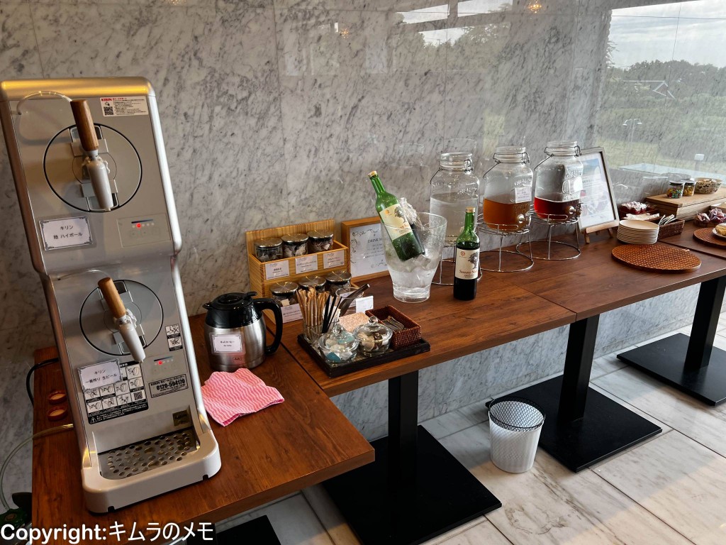 提供されているドリンク類はビール、ハイボール、赤・白ワインとソフトドリンクとなる。