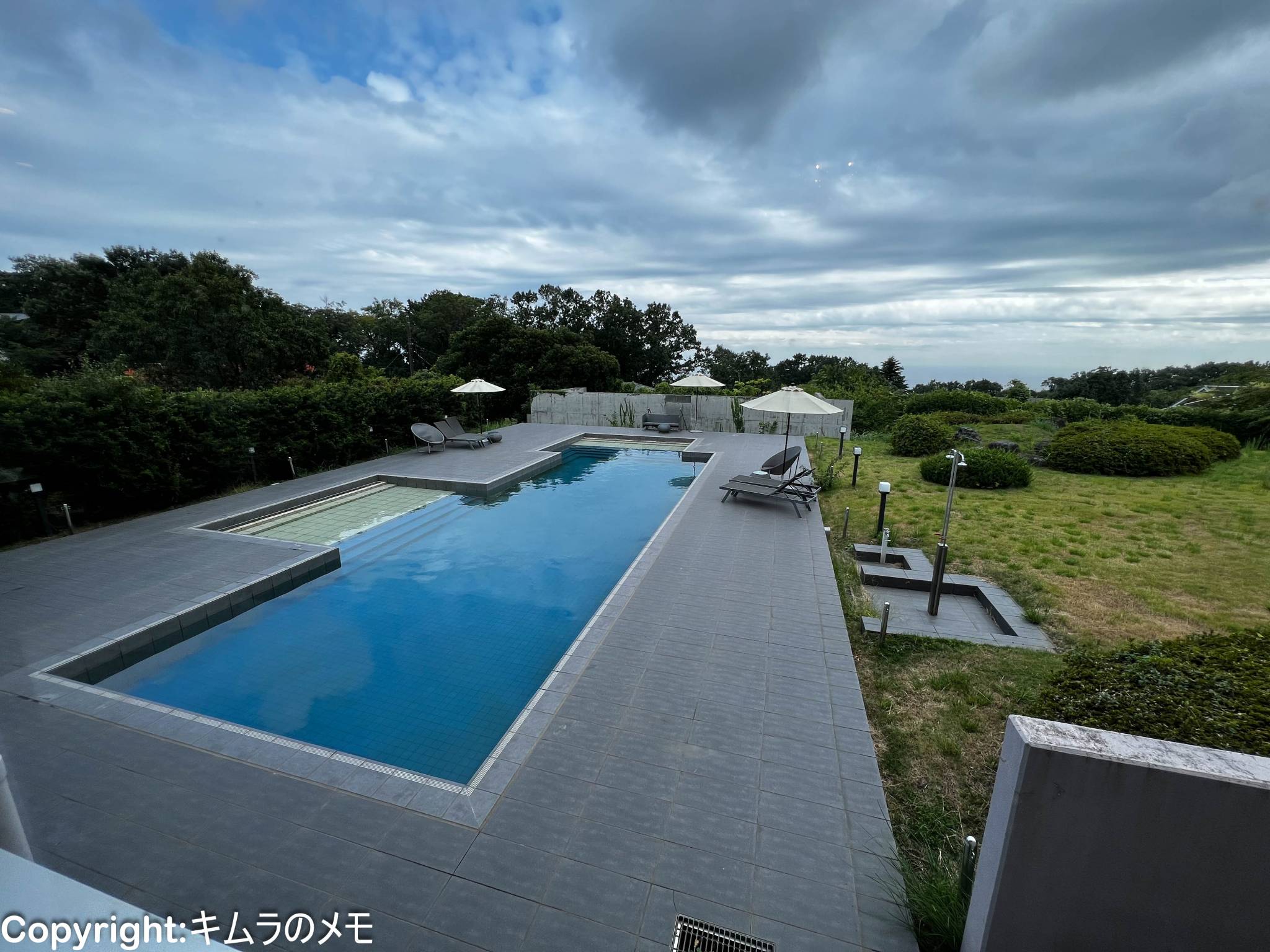 客室は主に2Fだが、プールの目の前にも一室あるのでプールからは丸見えとなる。