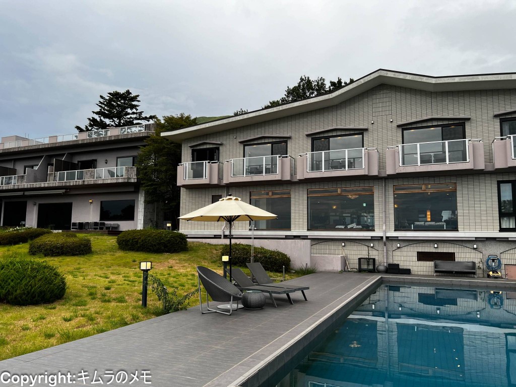 別荘地の中にあるこちらの施設はいわゆるホテル的なゴージャス感はないものの、周辺にある別荘とは一線を画す荘厳な造りとなっている。