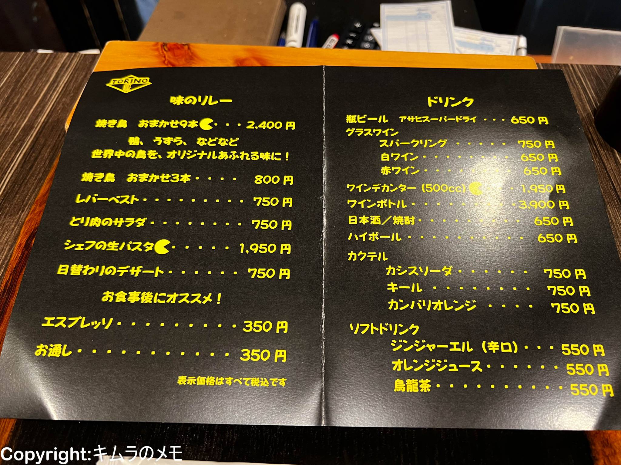 非常に絞られており、「この店に来たら焼鳥とパスタ」という感じとなる。