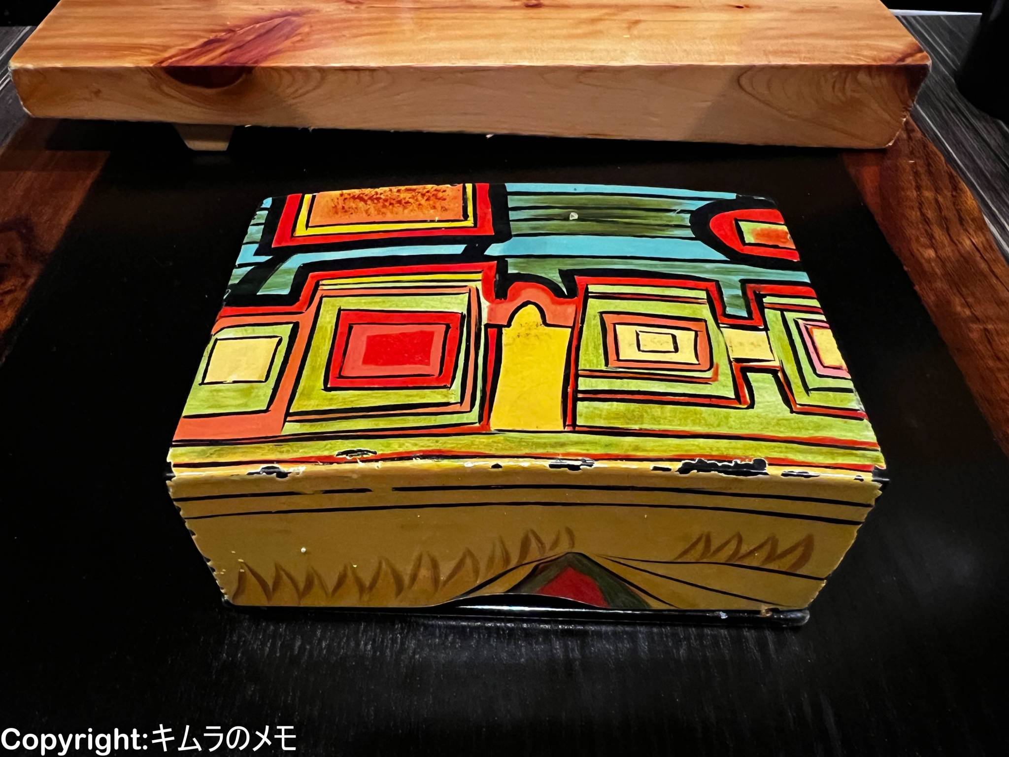 このお通しがなかなか凝っており、鮮やかな色合いで描かれた箱の中にお通しが入っている。