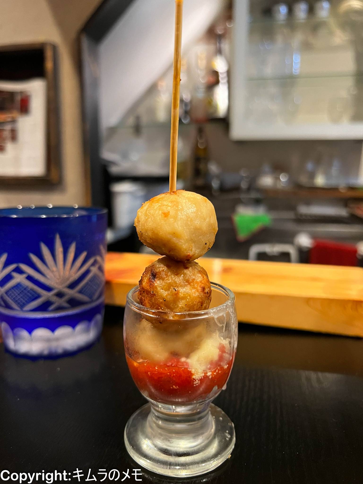 つくねそのものも何となくフリット感があるようなタイプで、トマトソースとパルメザンチーズの入った小さな器に入った状態で提供される。