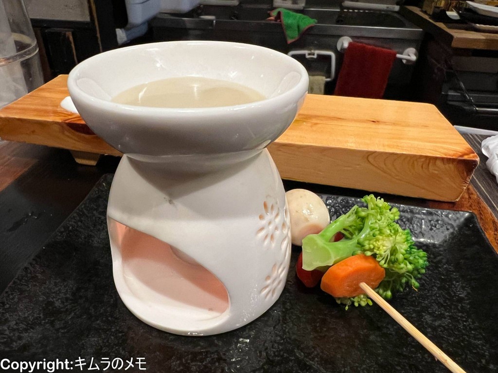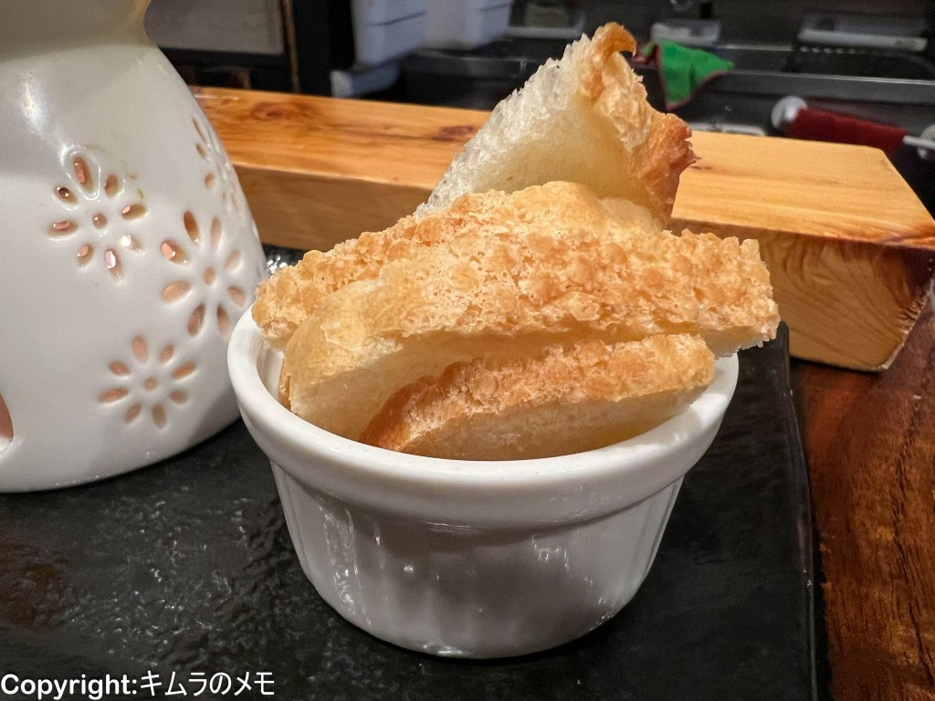 流石にブロッコリーとニンジンだけだとバーニャカウダソースを全て使い切れないので、串を食べ終わった後に自家製のラスクを提供してくれる気遣いが嬉しい。