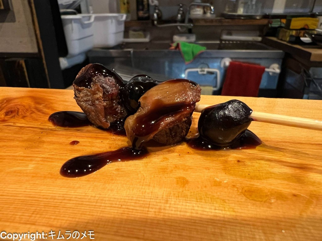 砂肝をブルーベリーと共に焼き上げそれをバルサミコソースで頂くというなかなか突き抜けた発想の串料理だが、これが意外と美味しい。