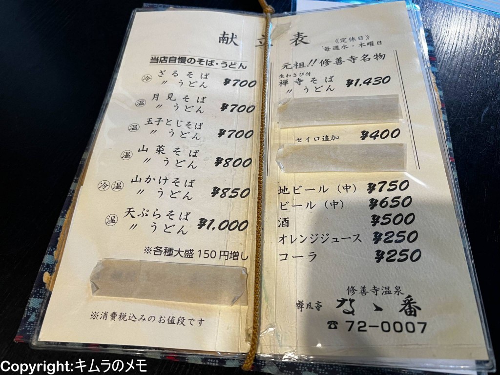 こちらのお店は蕎麦の店ということで、メニューは蕎麦とうどんのみ。