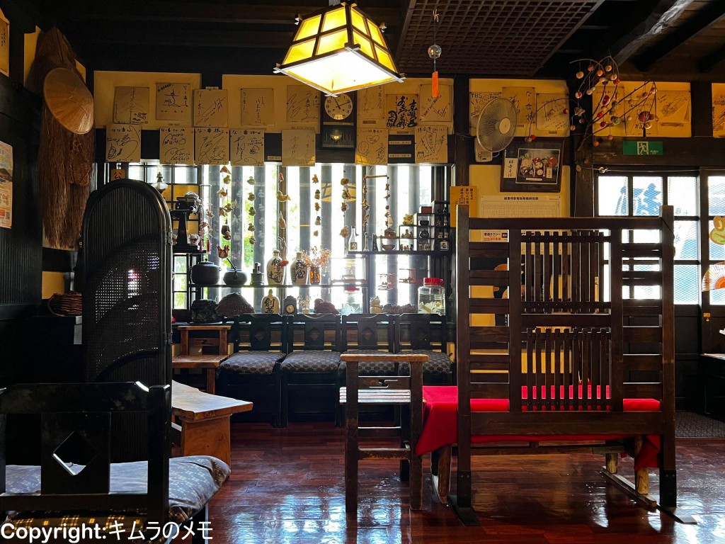 店内は非常に古風な造りとなっており、置かれている小物類も昭和を感じさせるようなレトロな雰囲気となっている。