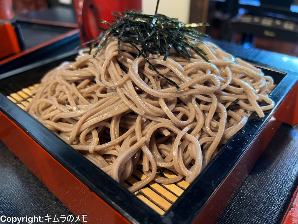 蕎麦粉感はほどほどに感じられ、それなりにしっかりした歯応えがある。
