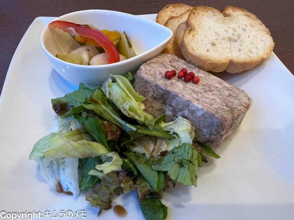 前菜としてオーダーしたパテはかなり固めに仕上がっておりナイフでしっかりと切って頂く非常にシンプルで癖のないもの。