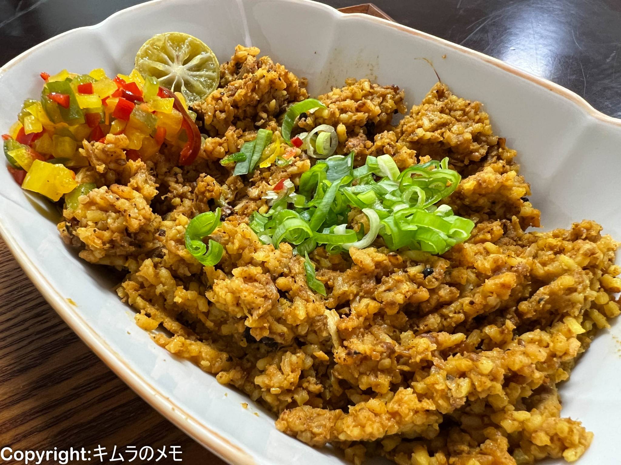 そしてビリヤニだが、こちらは想像していたものとは少々異なる穀物をペースト状にしたようなイメージに近く、味わい的に辛さはほぼ無く、優しいスパイス感を感じる程度。