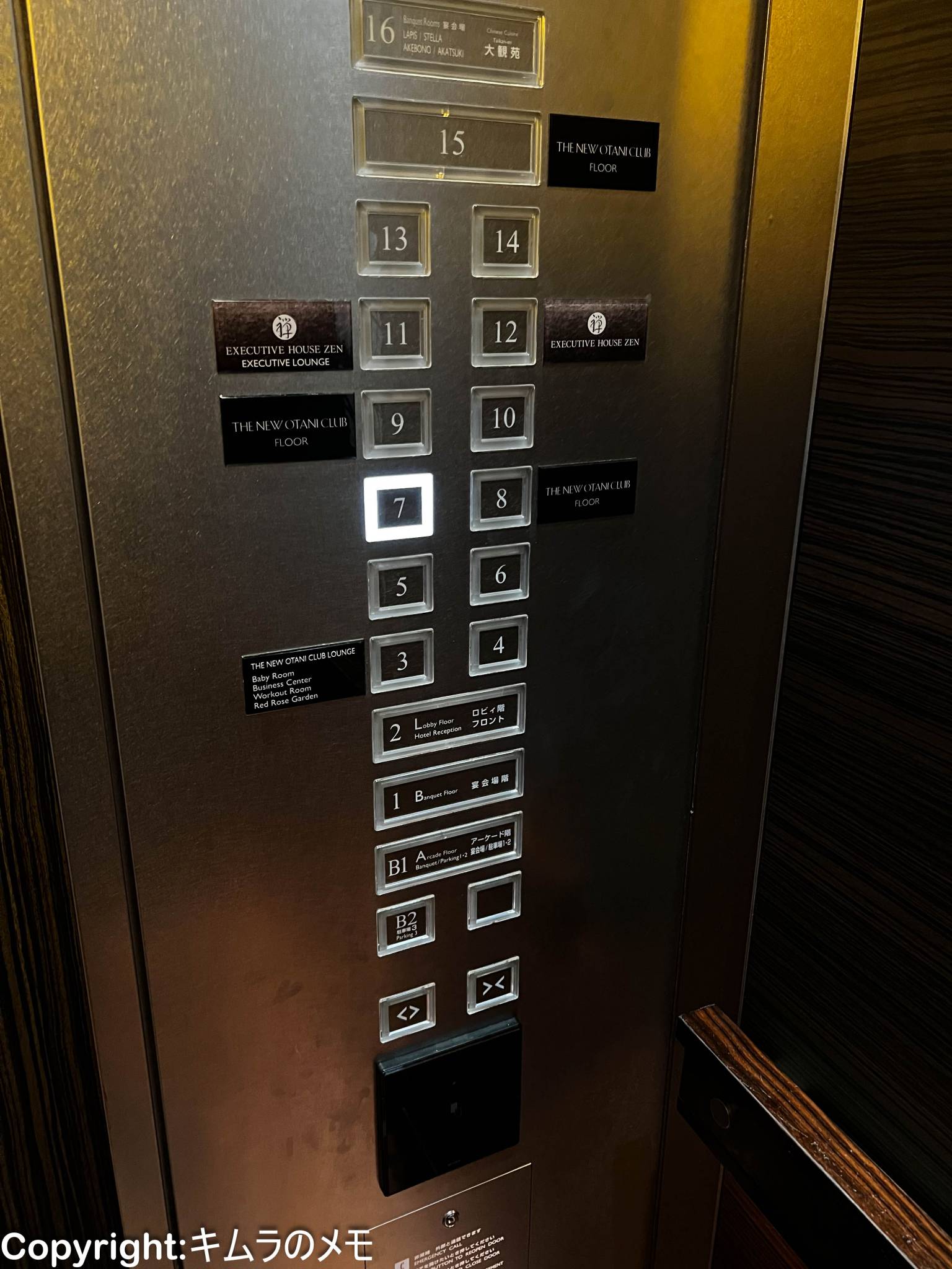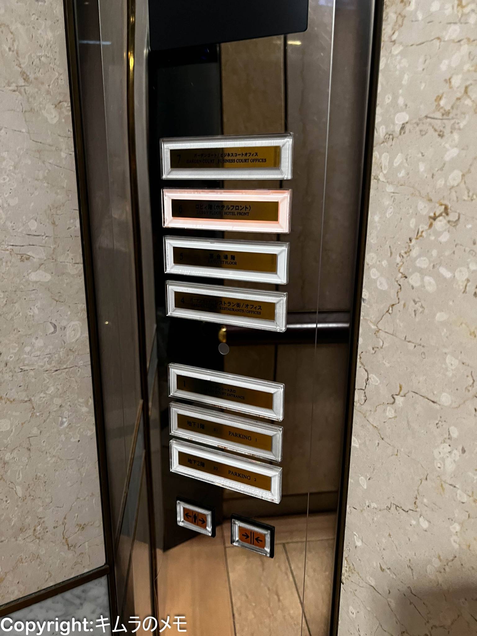 エレベーターは客室のカードキーをかざしてからフロアを選択するタイプとなっている。