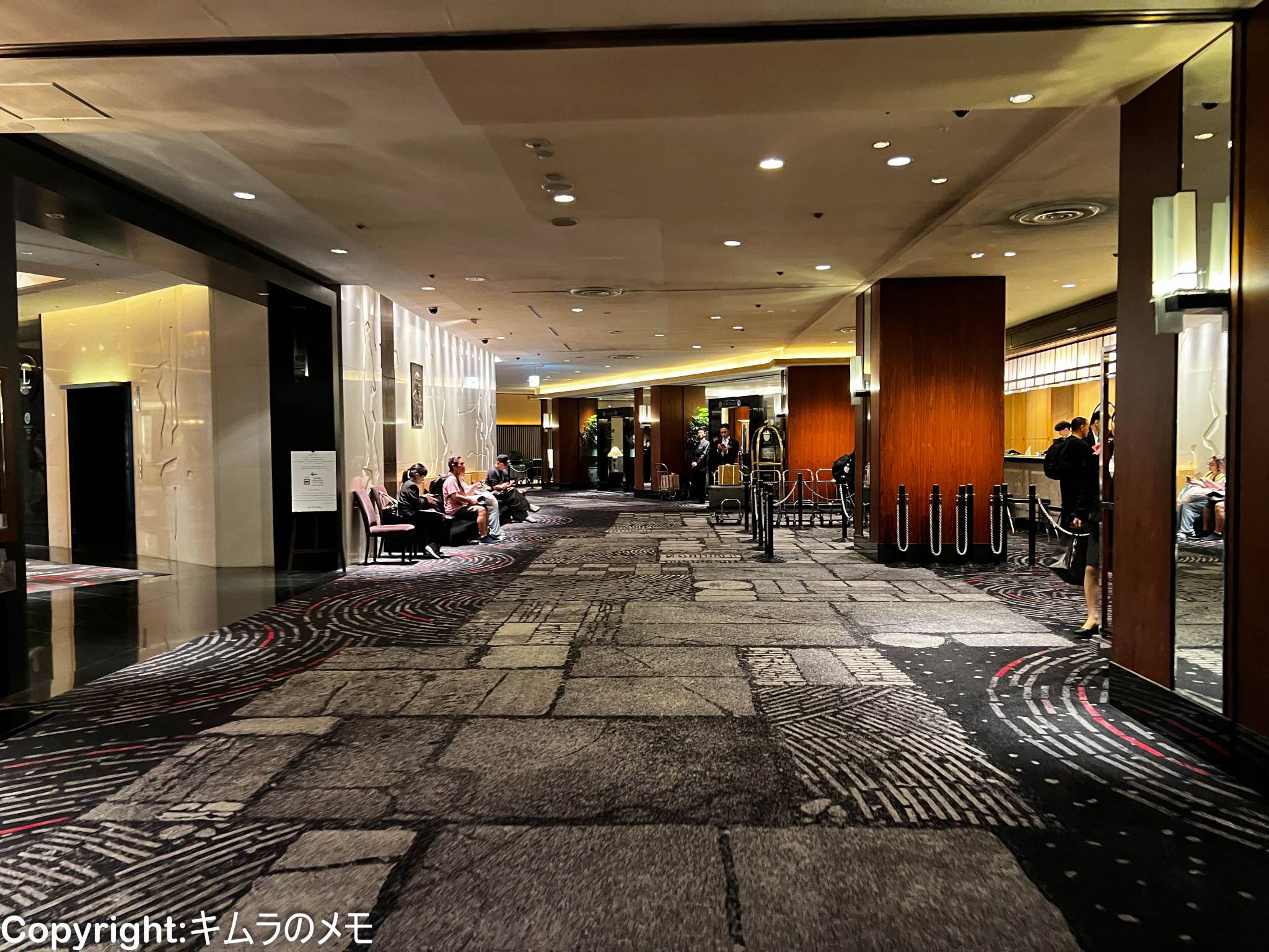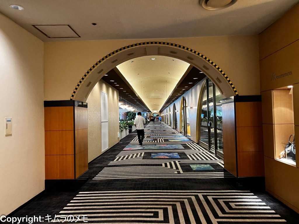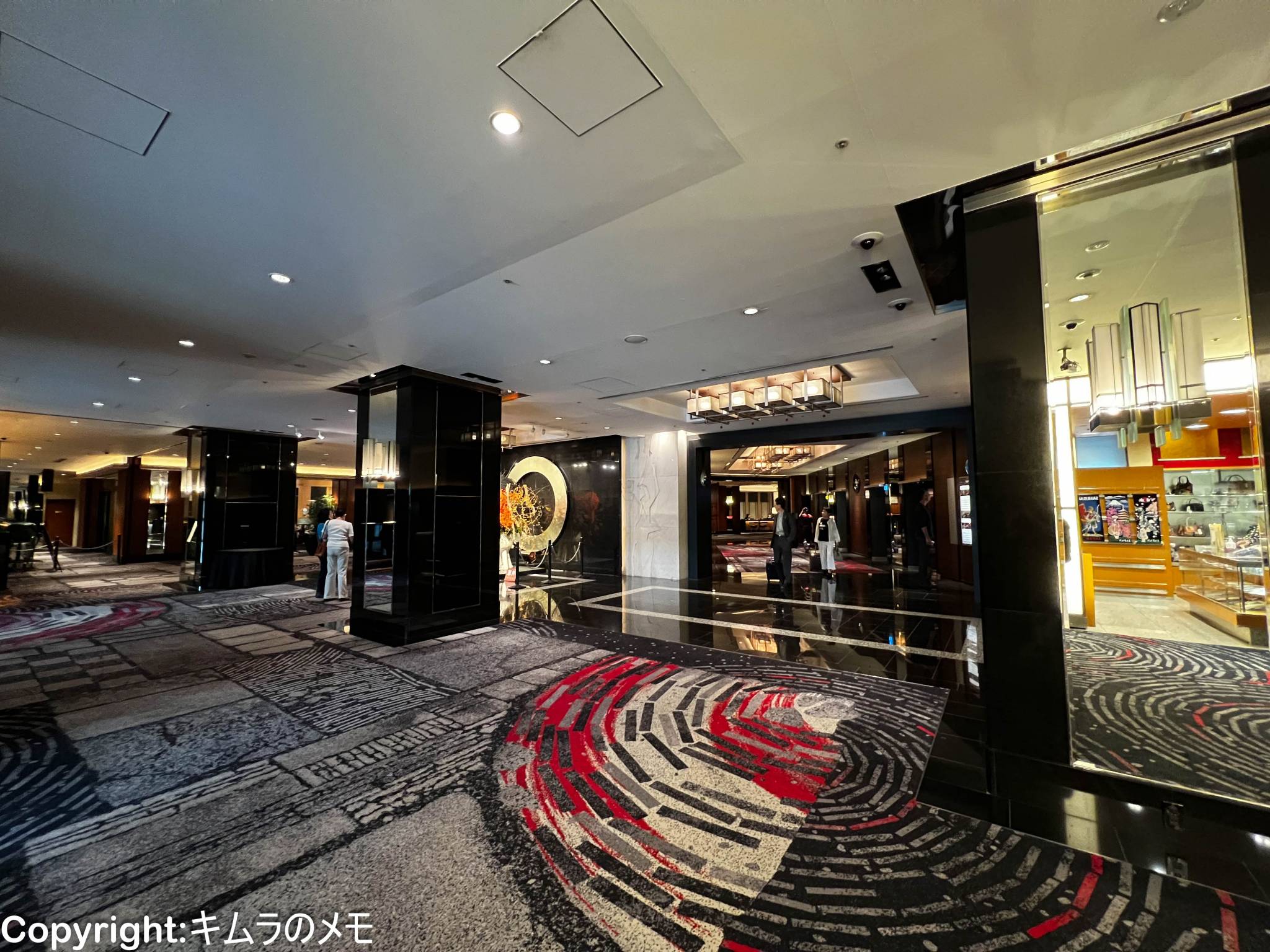 カーペットの色合いや照明の雰囲気など、古き良き由緒あるホテルという雰囲気になっている。