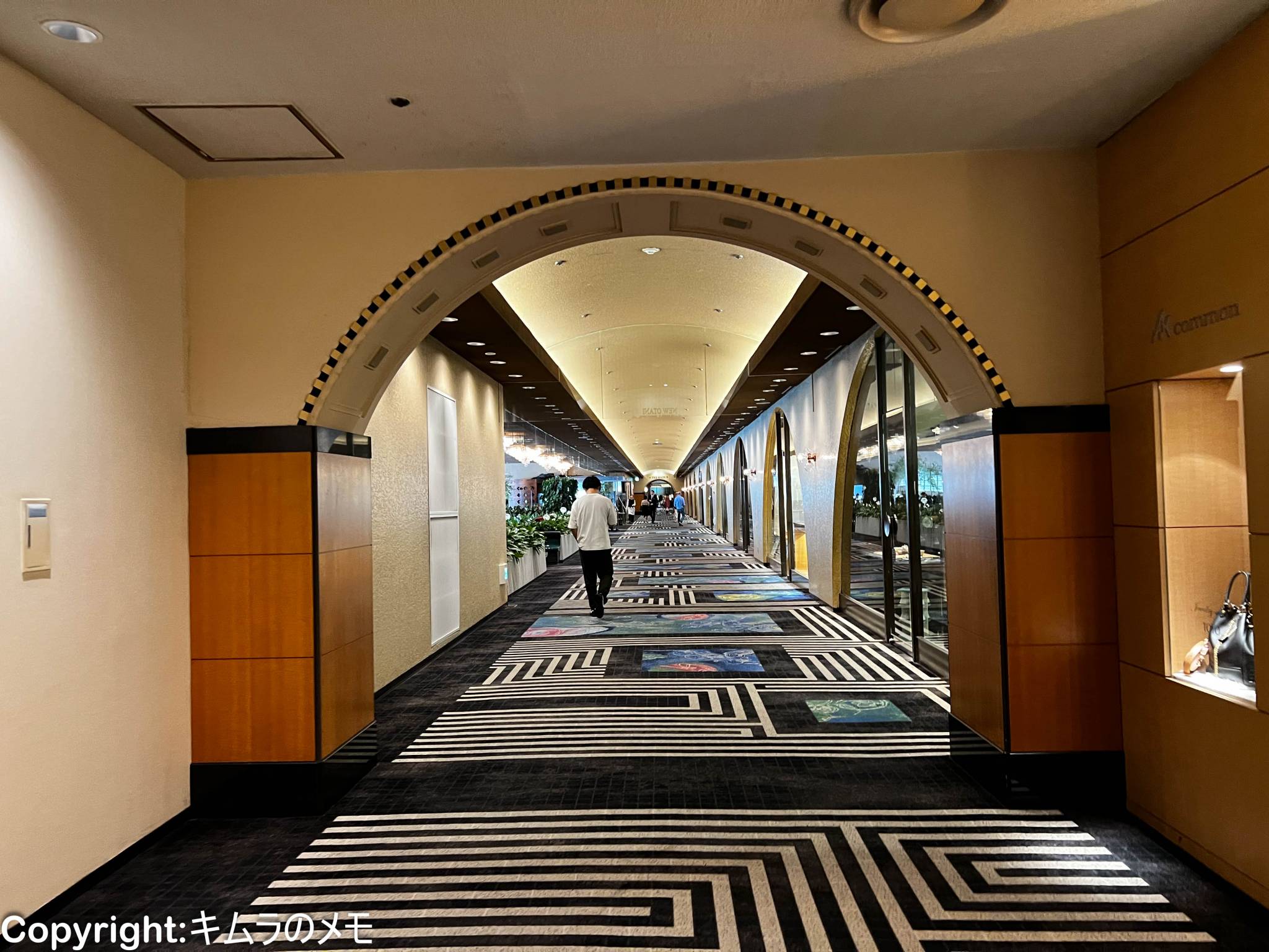 今回は赤坂見附駅から徒歩でこちらのホテルに向かったので、ホテルへのアクセスはガーデンタワーを抜けていくようなイメージとなる。