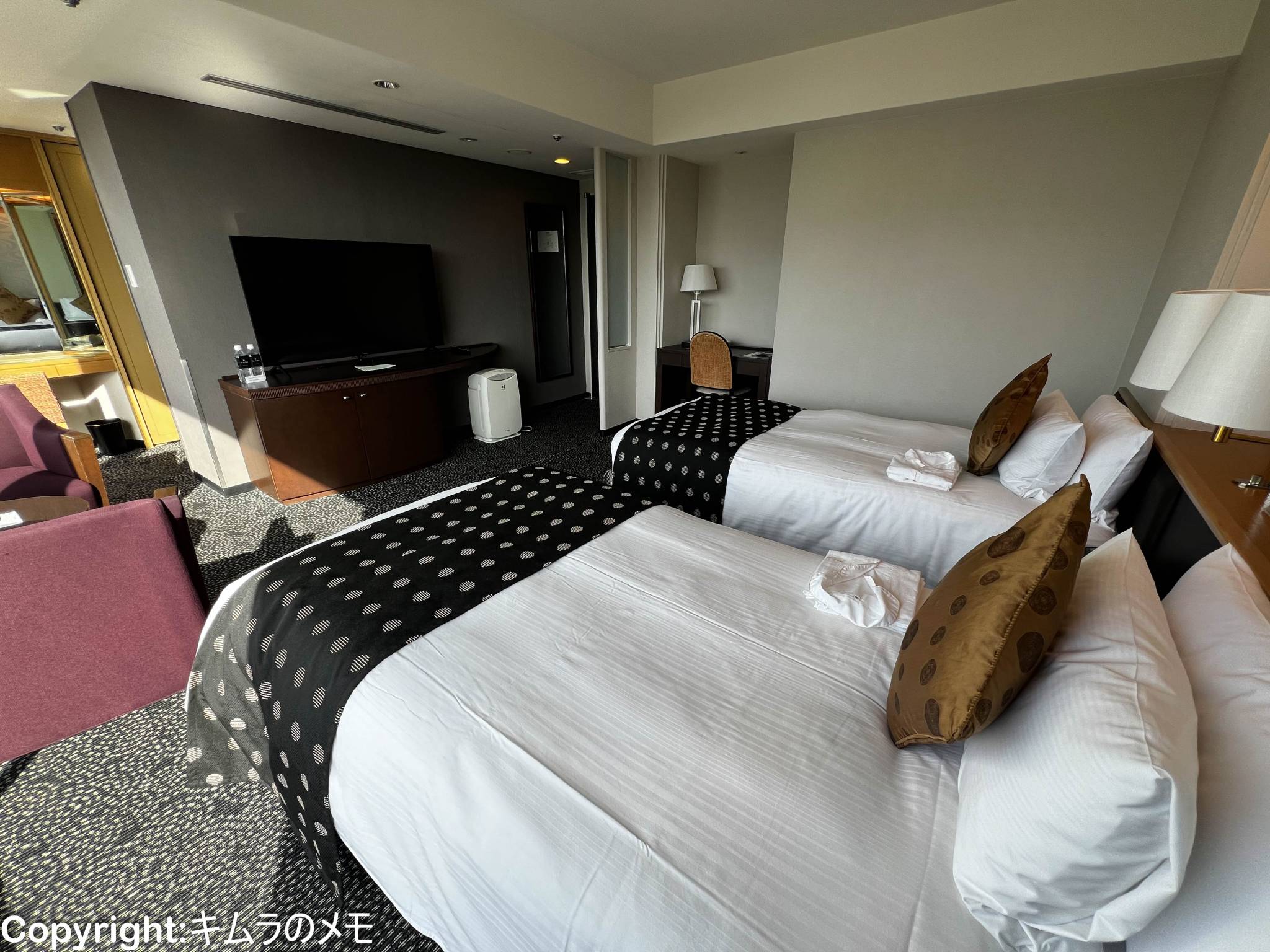 今回はメインタワーに宿泊したのでそちらに絞ってみても、通常の客室は一番狭い26平米のクオリティー、スタンダード、デラックスの3タイプあり、クオリティーを除く2タイプにはツインとダブルの設定がある。