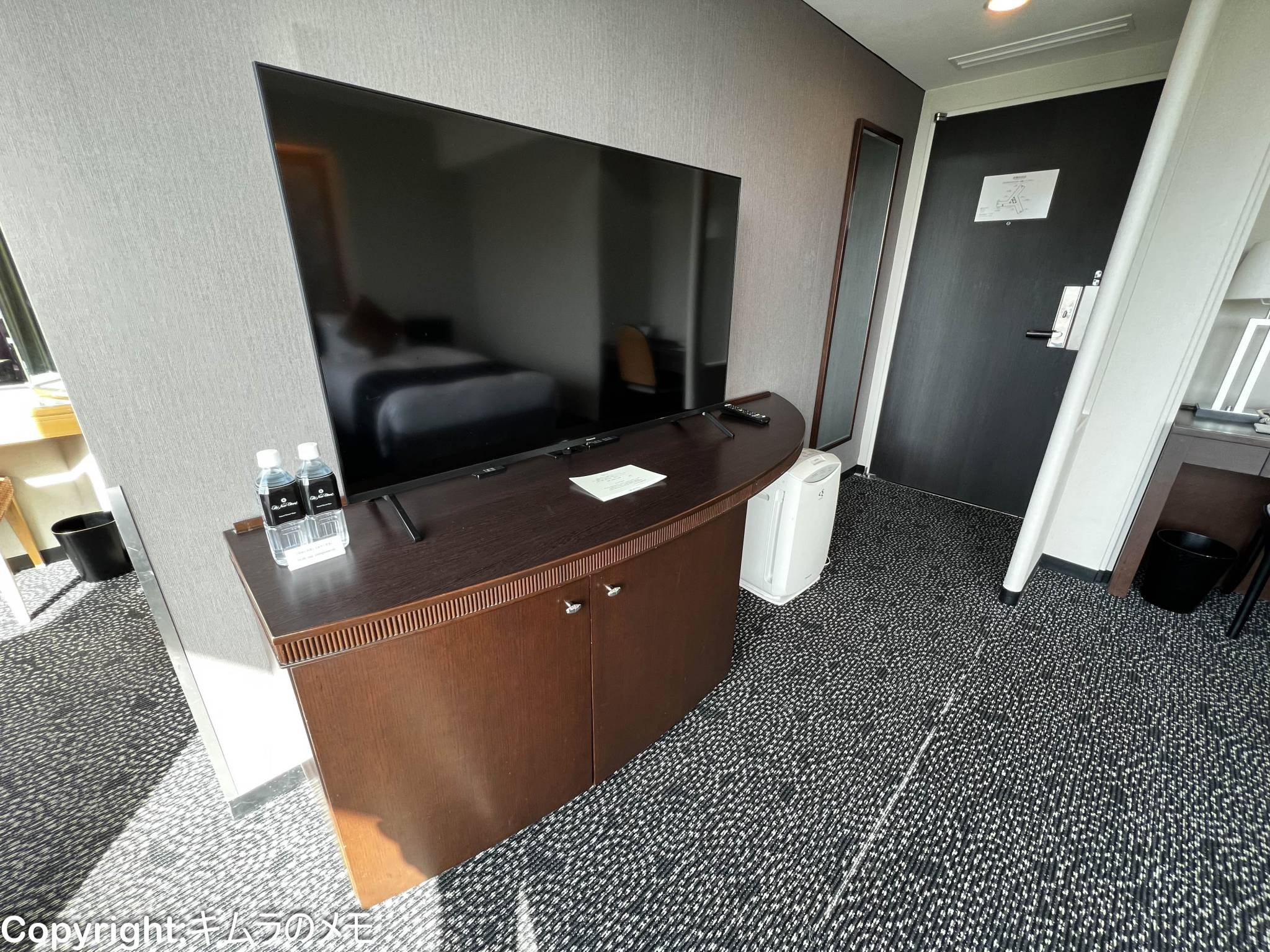 ベッドの足元側にテレビが配されていることもあり、ベッドからそのままテレビを見られるのがありがたい。