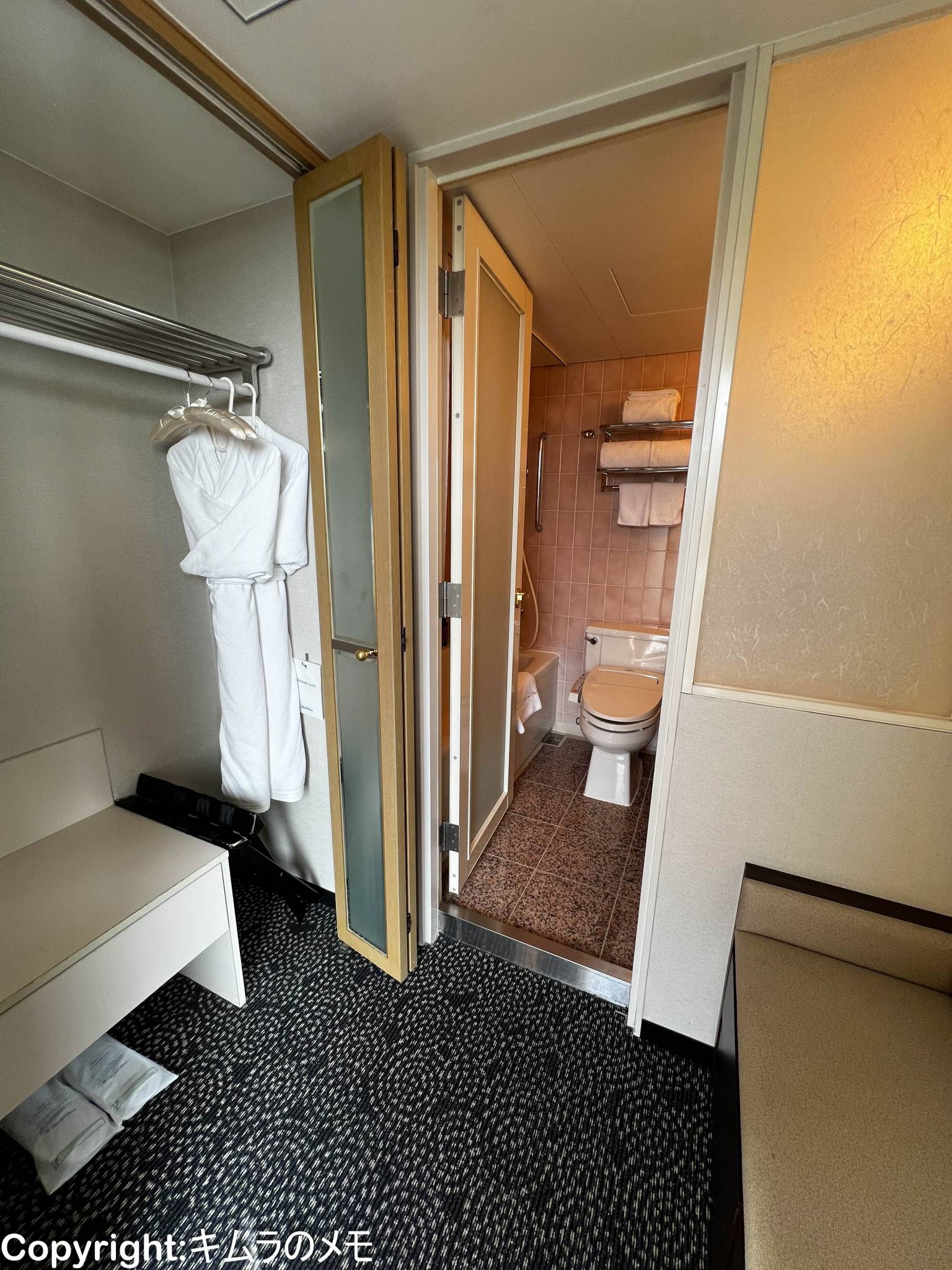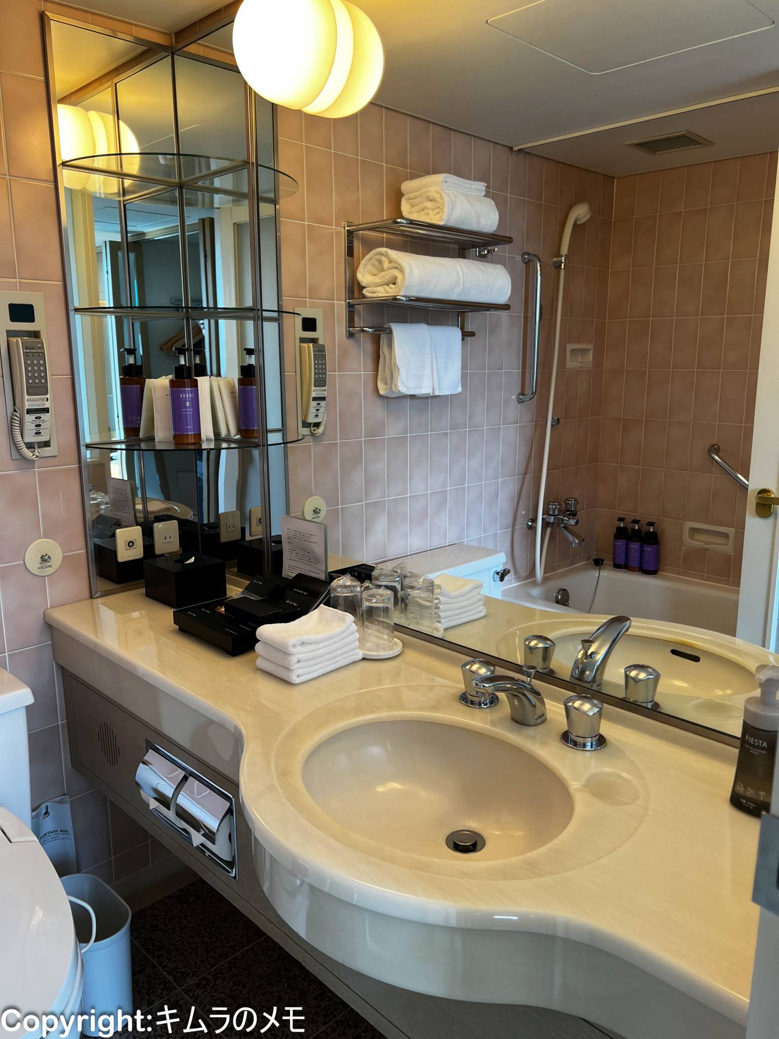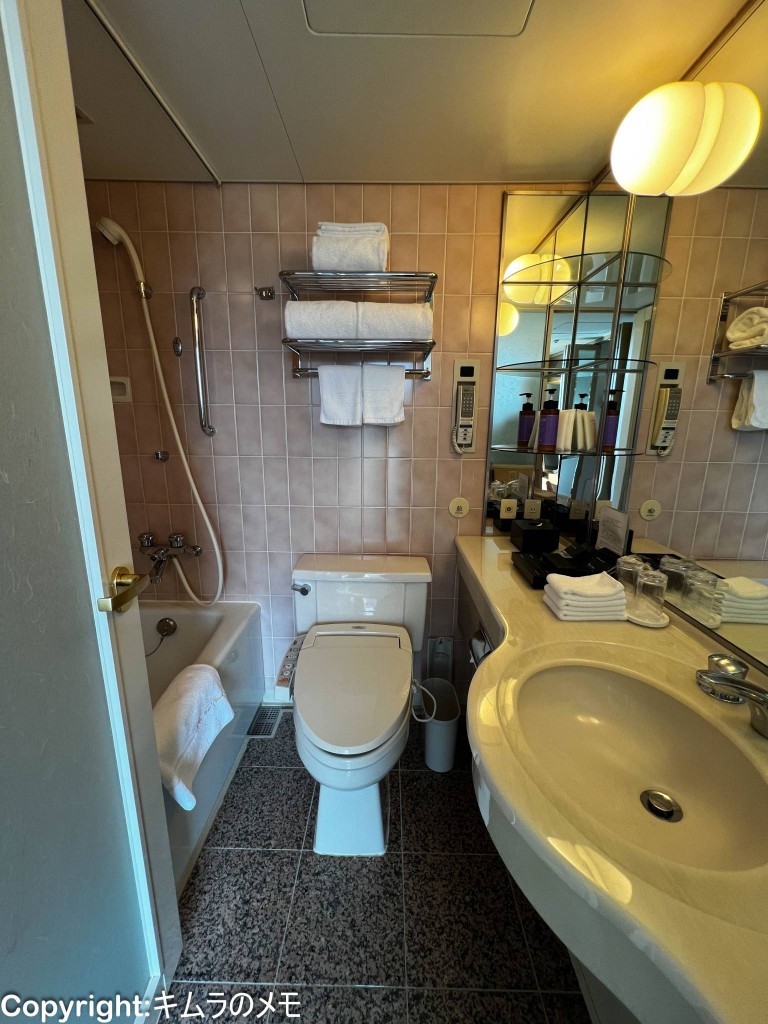 さて水回りだが、一般的なビジネスホテルでよくみられるユニットタイプではあるが、流石に内装は高級感があり広さもしっかりと確保されている。