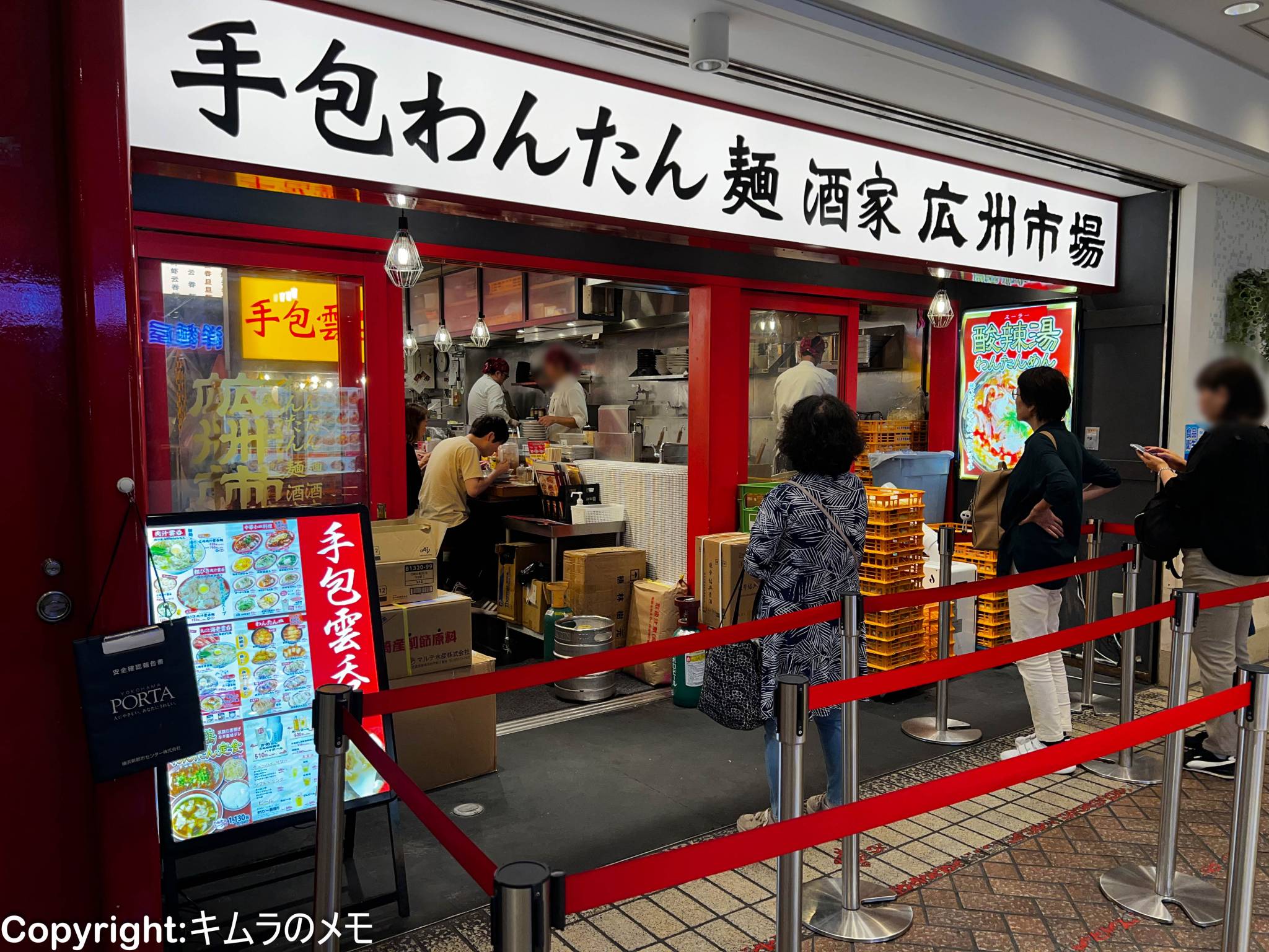 大きな字で「手包わんたん麺」と書かれているのと、店舗の前にはパーティションを使った待ち客用の列が用意されているのですぐに分かる。