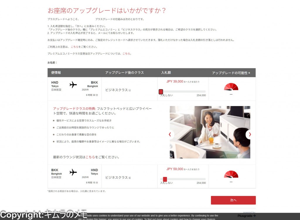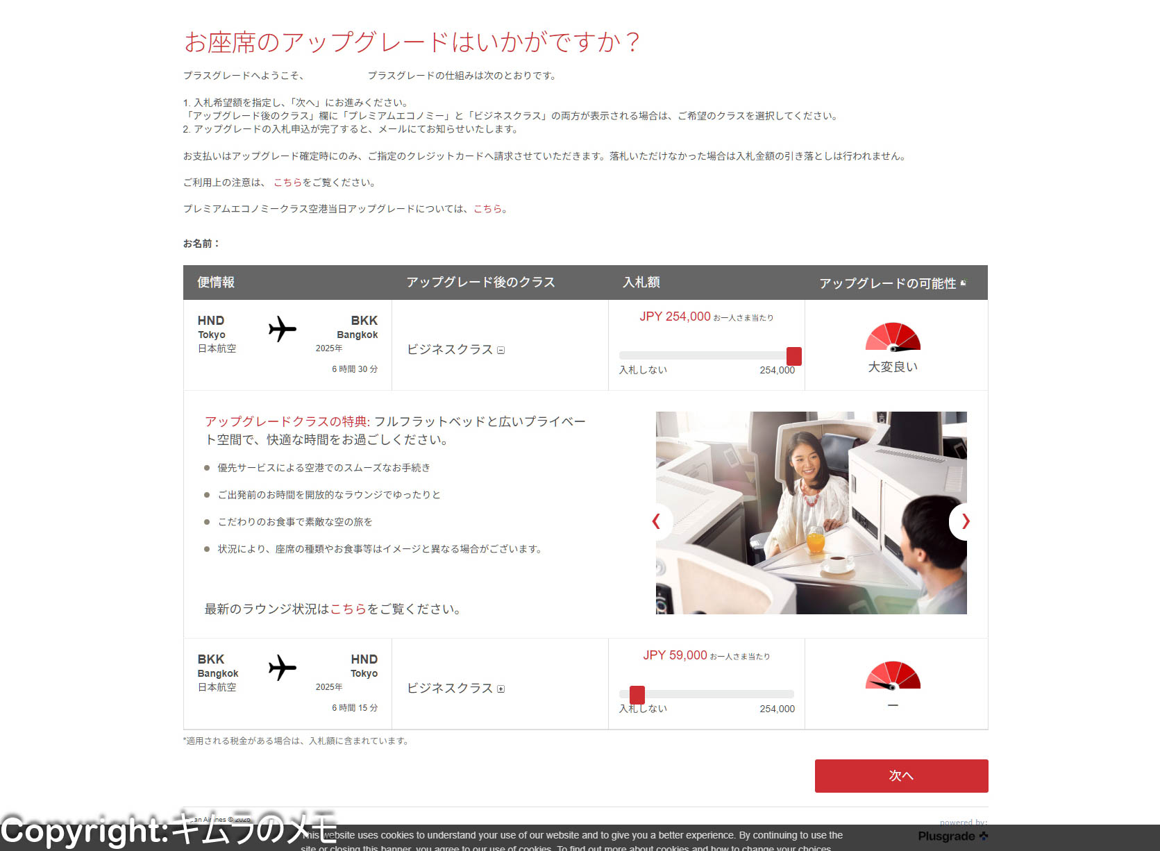 謎の多いこの入札アップグレード制度だが、これまでの経験を通じて言えることとしては