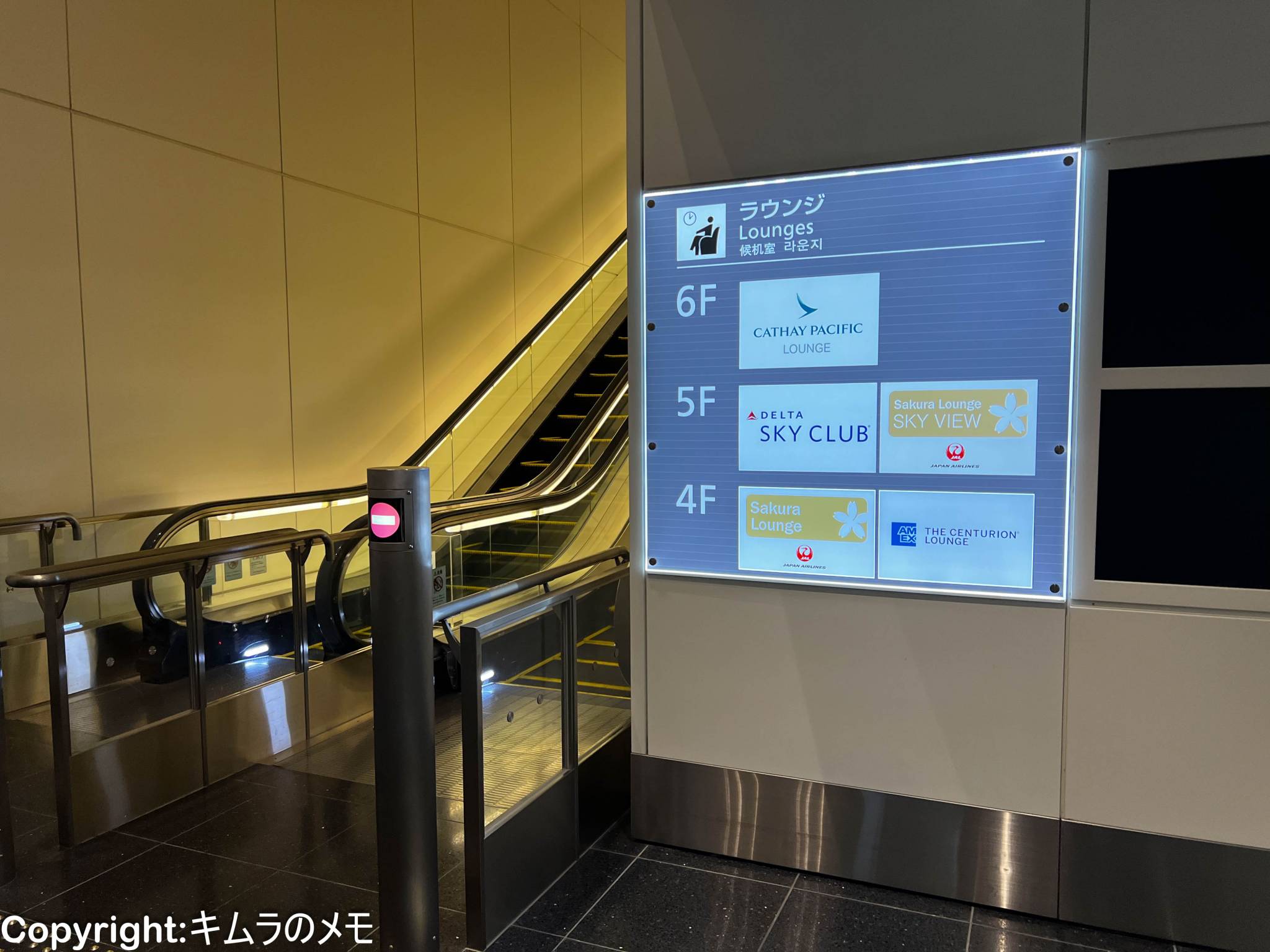 ラウンジは国際線ターミナルの114番ゲート横にある航空会社ラウンジエリアの中にある。