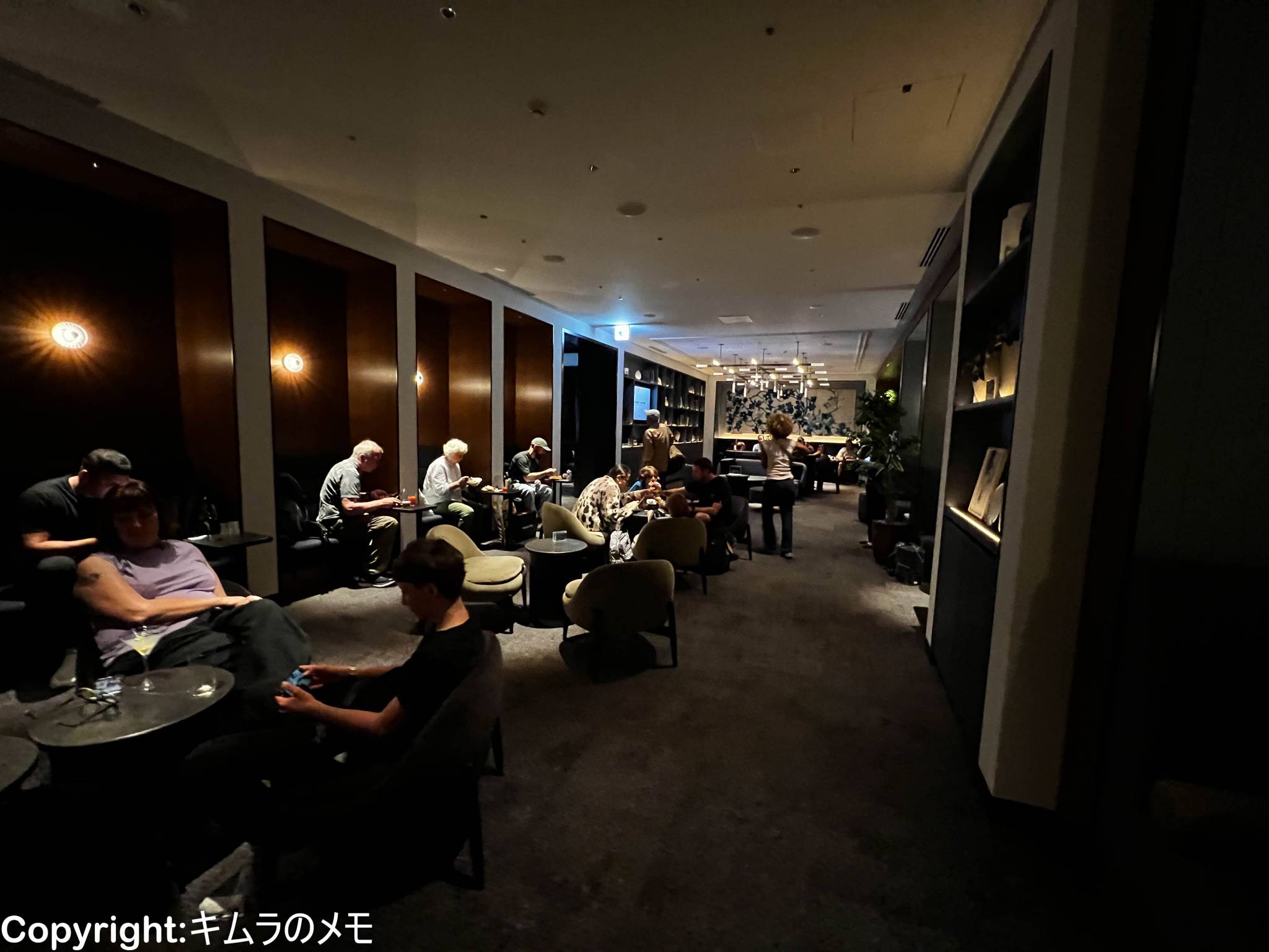 バーカウンターエリアはゴージャス感のある雰囲気となっているが、こちらのラウンジはワインやカクテル等がオーダー制となっているため、付近には絶えずひっきりなしに人がいるので落ち着かない席ではある。