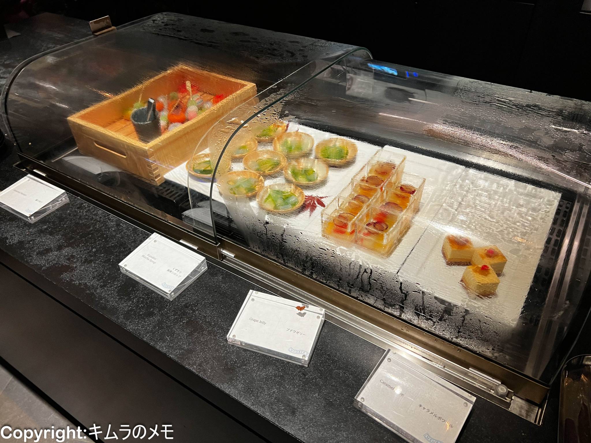 ゼリーやキャラメルポワールなどの洋菓子に加えてくずきりなどの和菓子も提供されている。