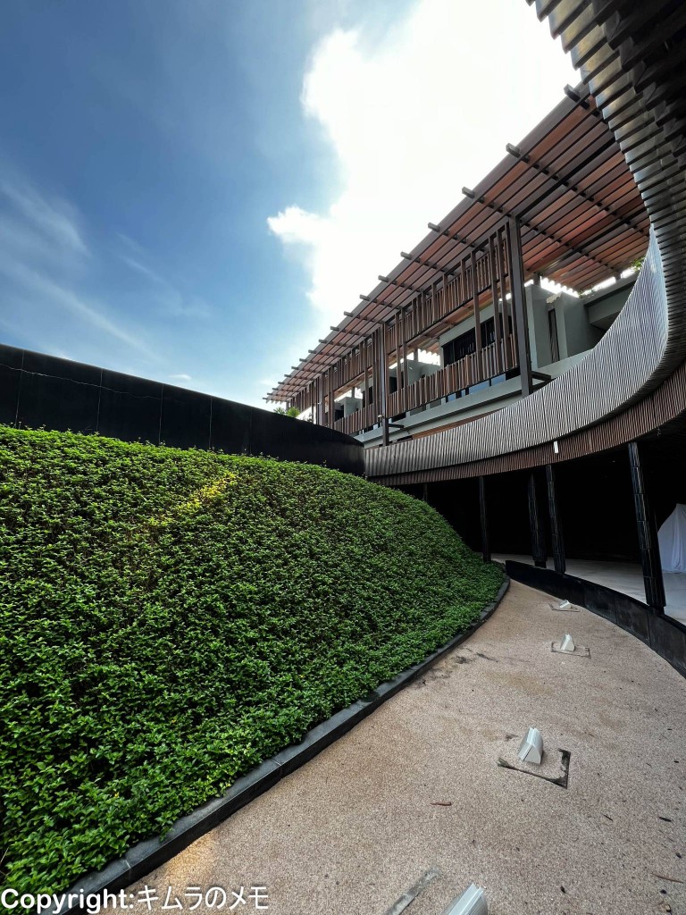 なお、写真に写っている面がパタヤビーチと陸地が半分ずつ見えるオーシャンビューの部屋、右側の向こう側に向かって配されている部屋がパタヤビーチを目の前に臨めるオーシャンフロントの部屋となる。