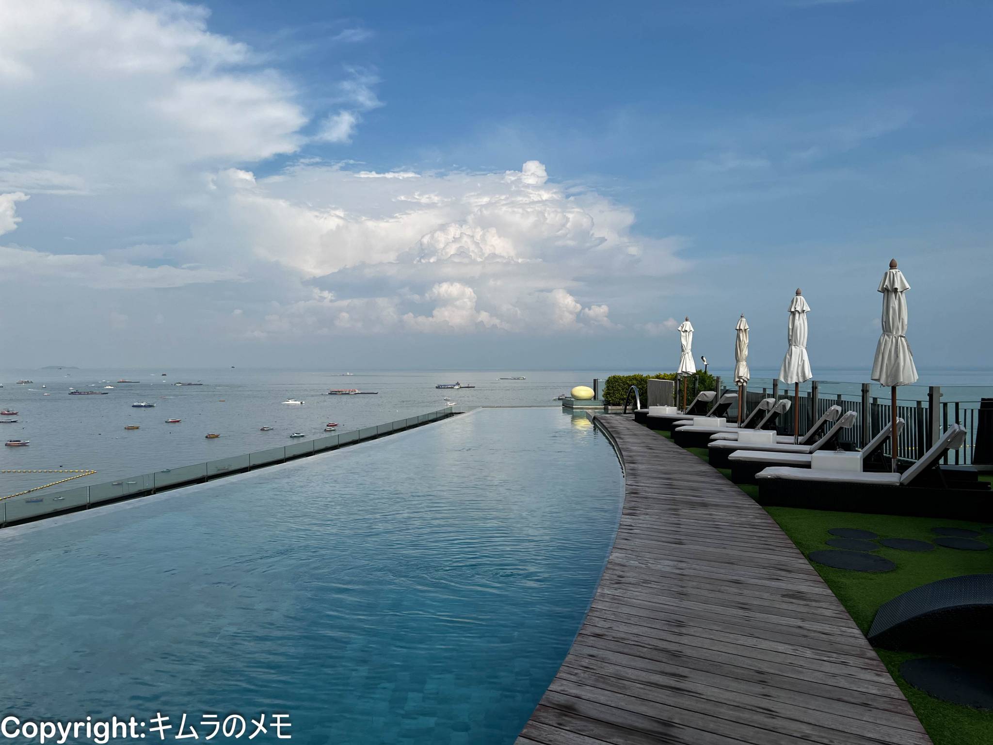 そしてこちらのプールはインフィニティプールとなっており、パタヤのビーチをプールからもブールサイドからも楽しめるのがウリ。