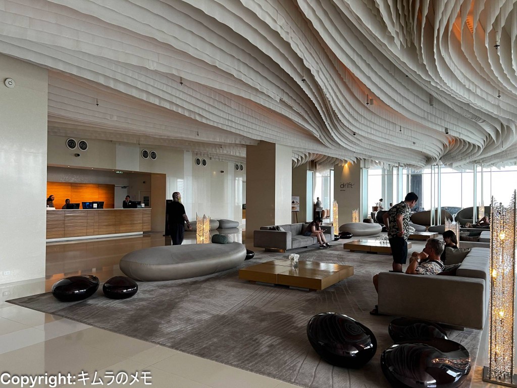 ワンフロアを広々とロビーエリアに使っており、外にはテラス的なスペースもありパタヤビーチを一望できる。