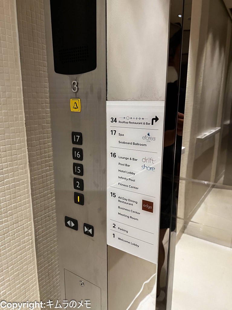 こちらの建物は低層階は商業施設となっているため、ホテルに向かう為にはホテル専用の入口から入り専用のエレベーターでロビー階である16Fまで向かう。