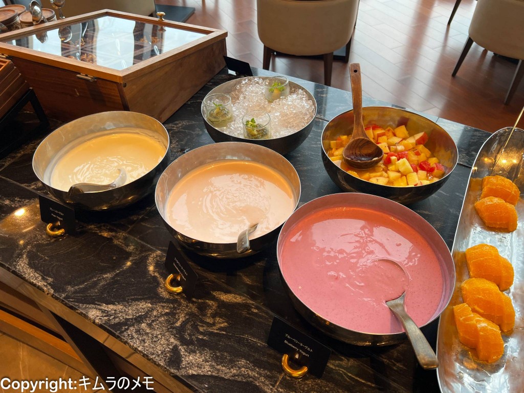 ミックスフルーツの他に、ヨーグルトも複数種類用意されている。
