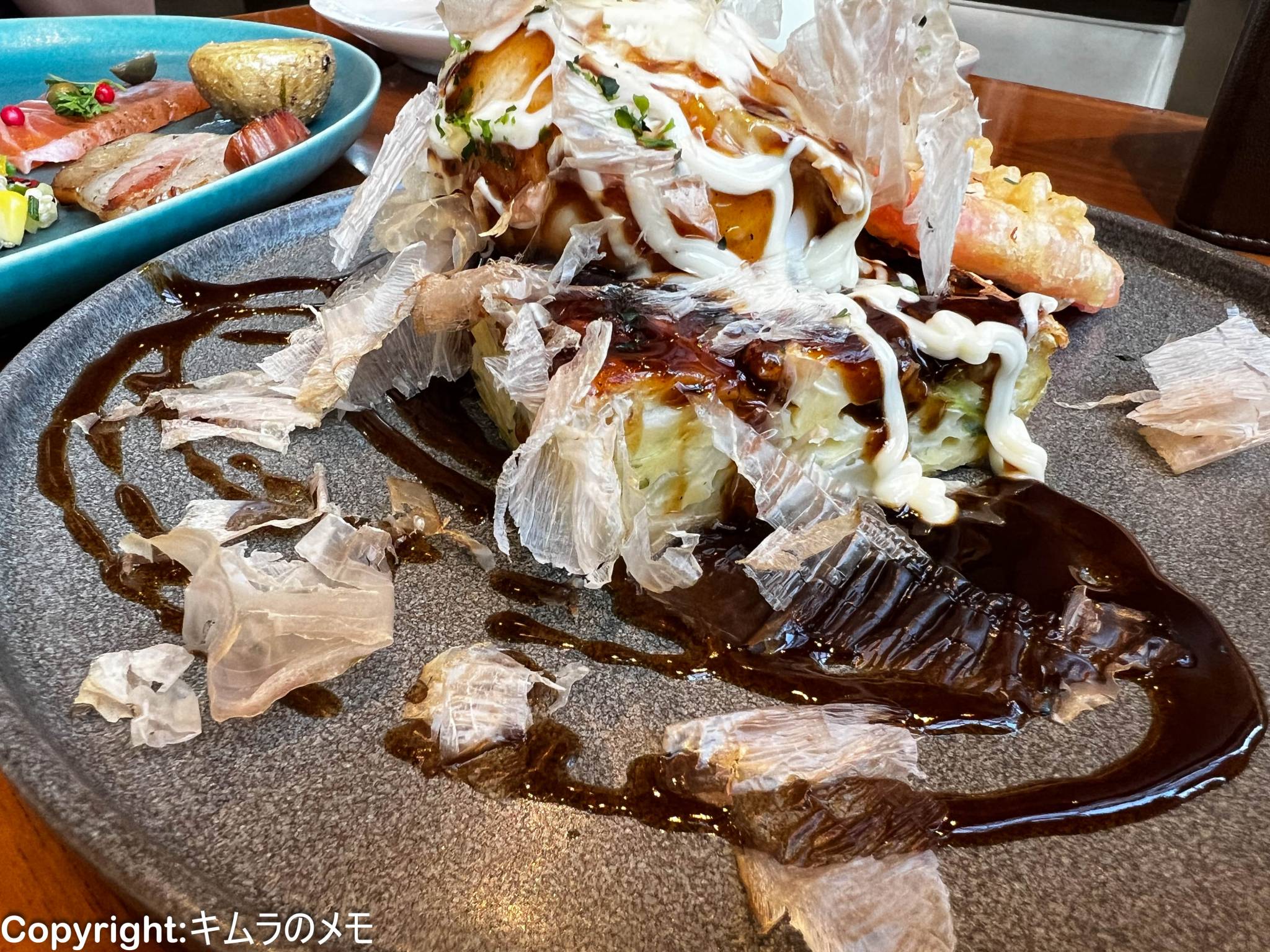前回も迷ったのだが、オススメはシグニチャーメニューの「お好み焼きベネディクト」。