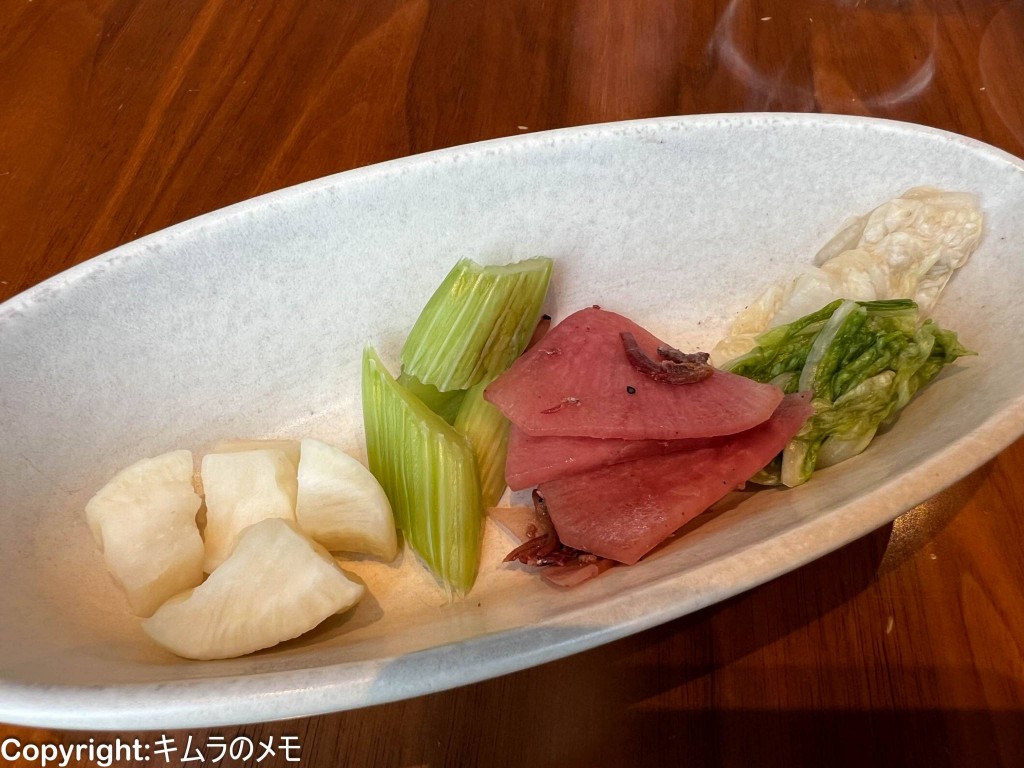 折角なので和食コーナーから漬物たちを少しずつ。