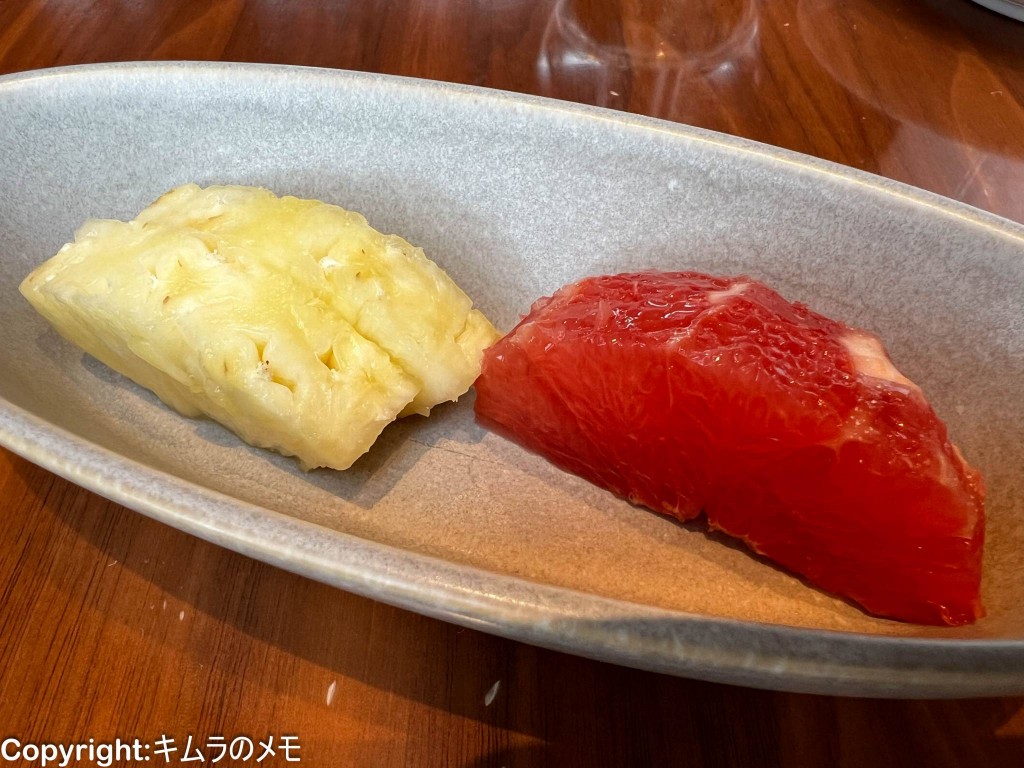 そして締めの第一弾としてフレッシュフルーツを頂く。