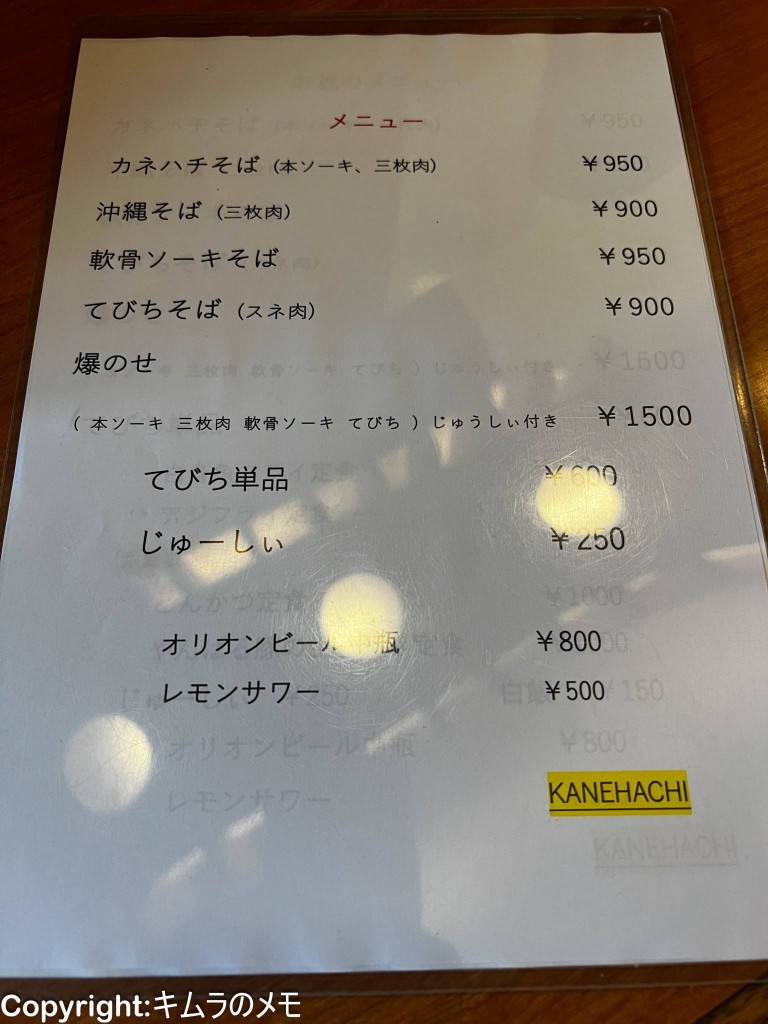 名前:久茂地そば KANEHACHI