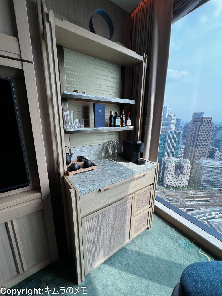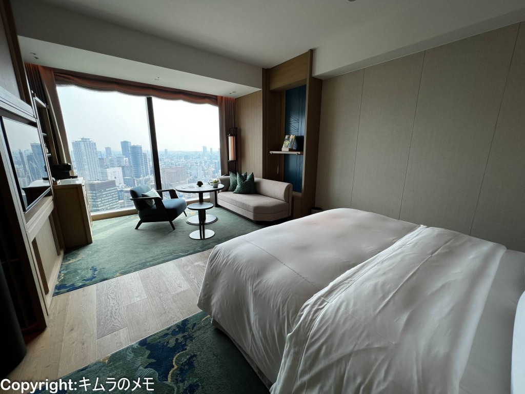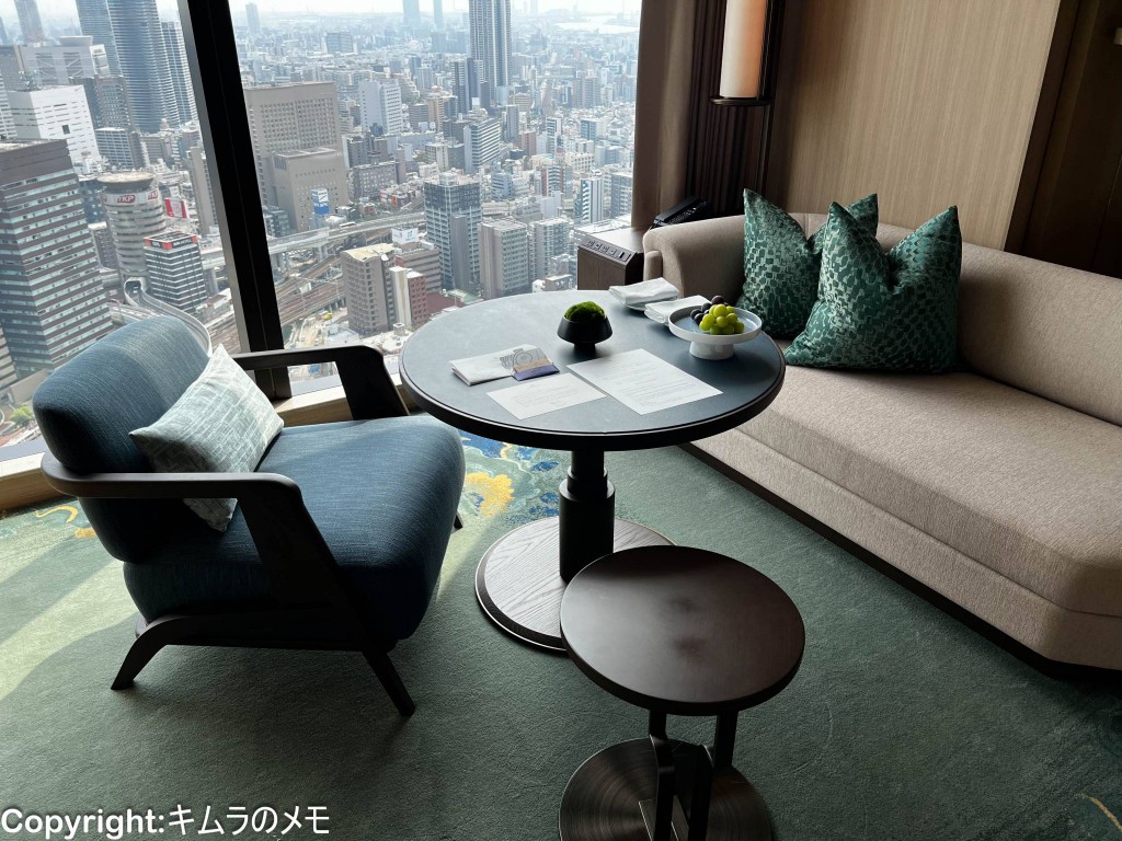 一方で、窓からの景色という点では、周辺に視界を遮るものが何もないコンラッド大阪と比較すると、こちらのホテルは若干梅田エリアの雑踏を感じられるような印象もあり、窓から見える景色の非日常感という点ではコンラッド大阪の方が上かも知れない。