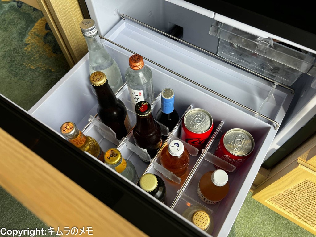 その他、冷蔵庫の中にもソフトドリンクやアルコール類が用意されている。