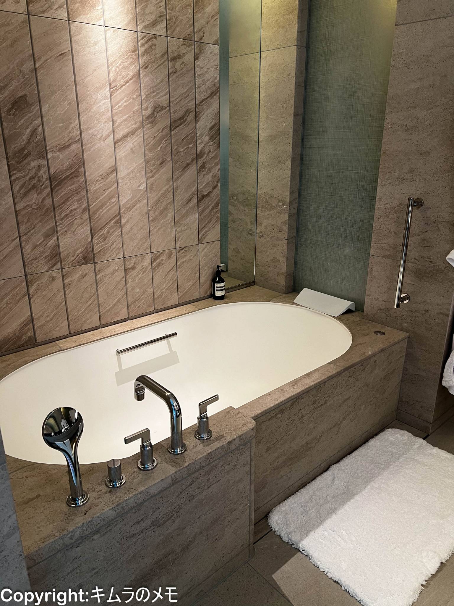 バスタブは写真では分かりにくいが、ゆったりと広めのサイズ感。