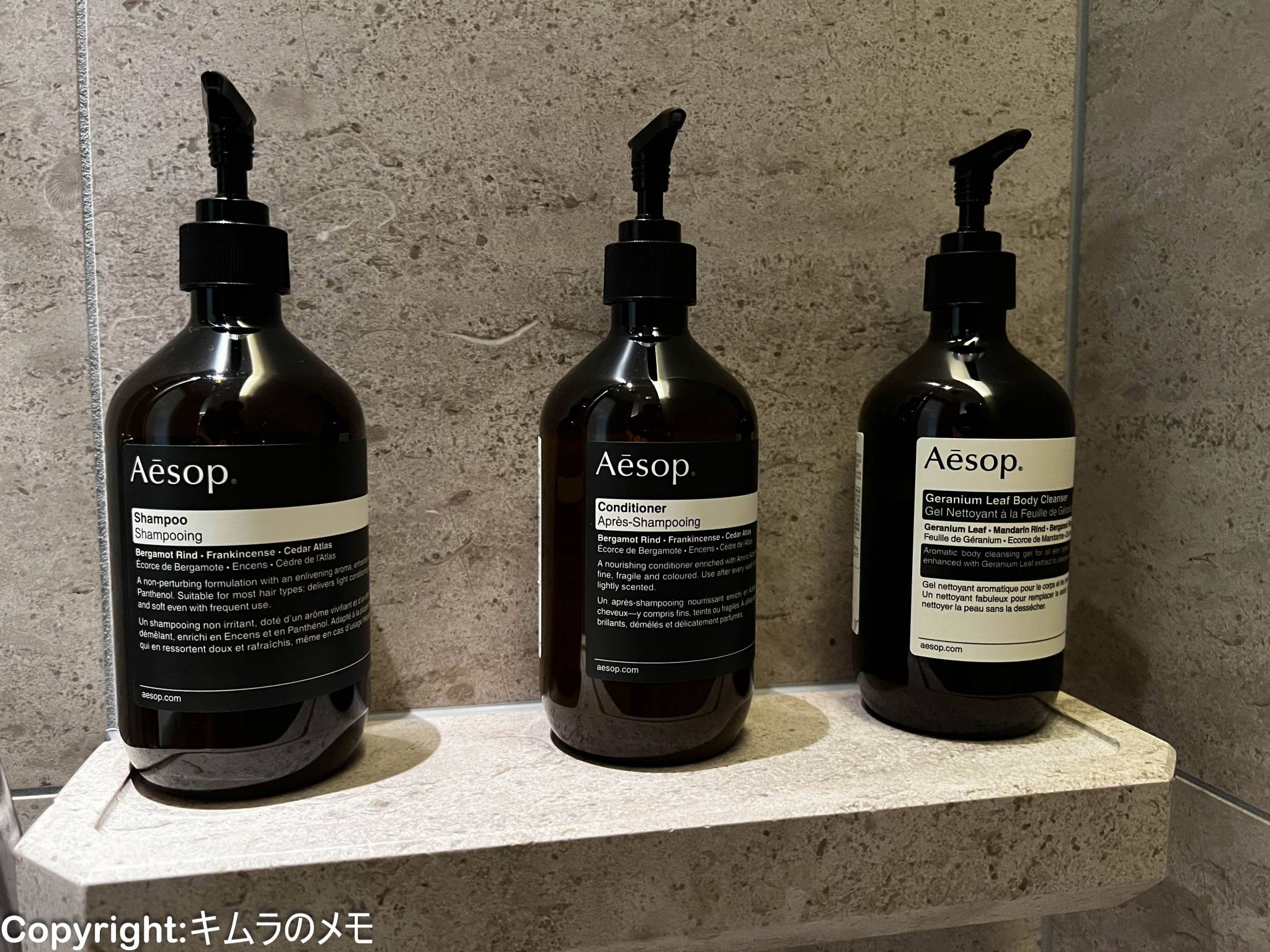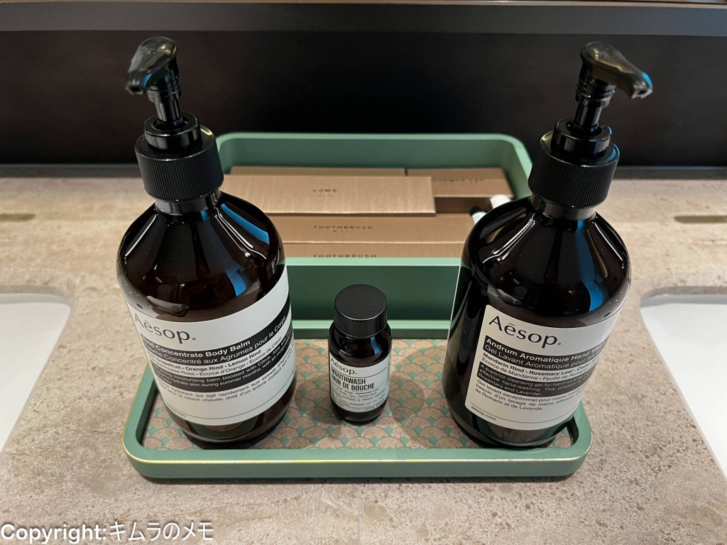 そしてアメニティーのメーカーはウォルドーフ定番のイソップとなっている。