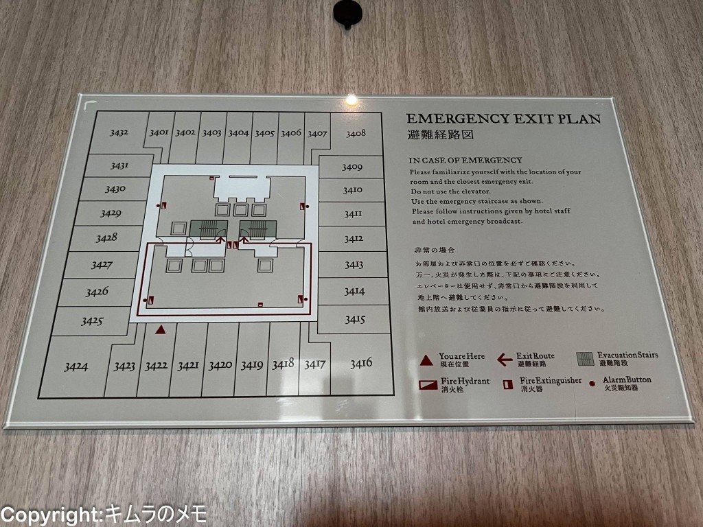 客室自体は31Fから38Fとなっていることを考えると、ホテルの階層としては中層階ではあるが、そもそも38階建ての建物の34Fということでもはや低層階・高層階という概念はあまりない。